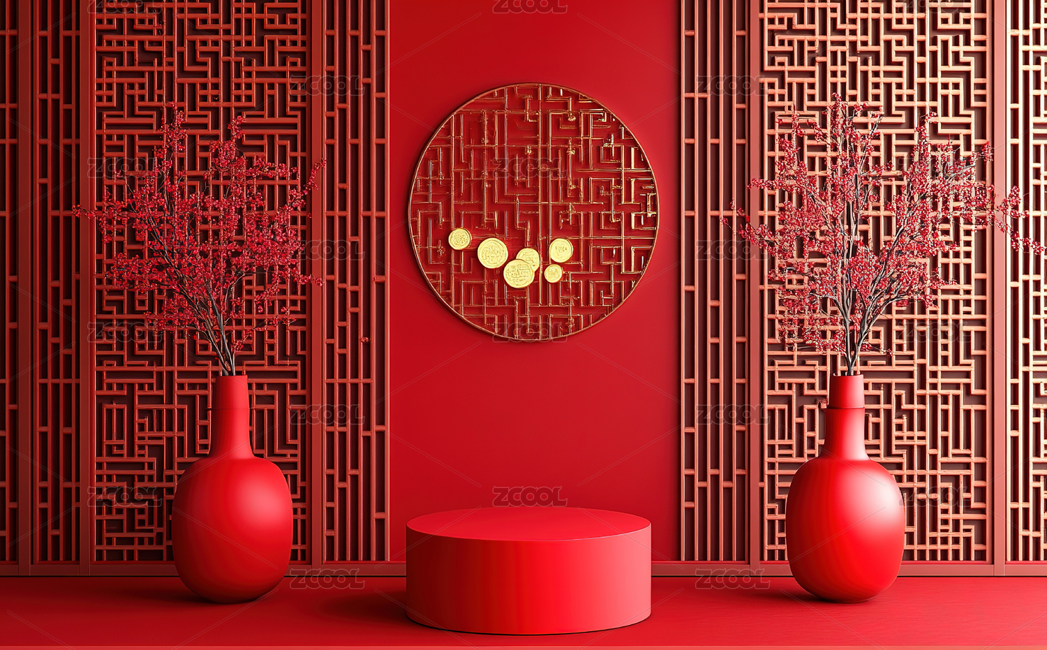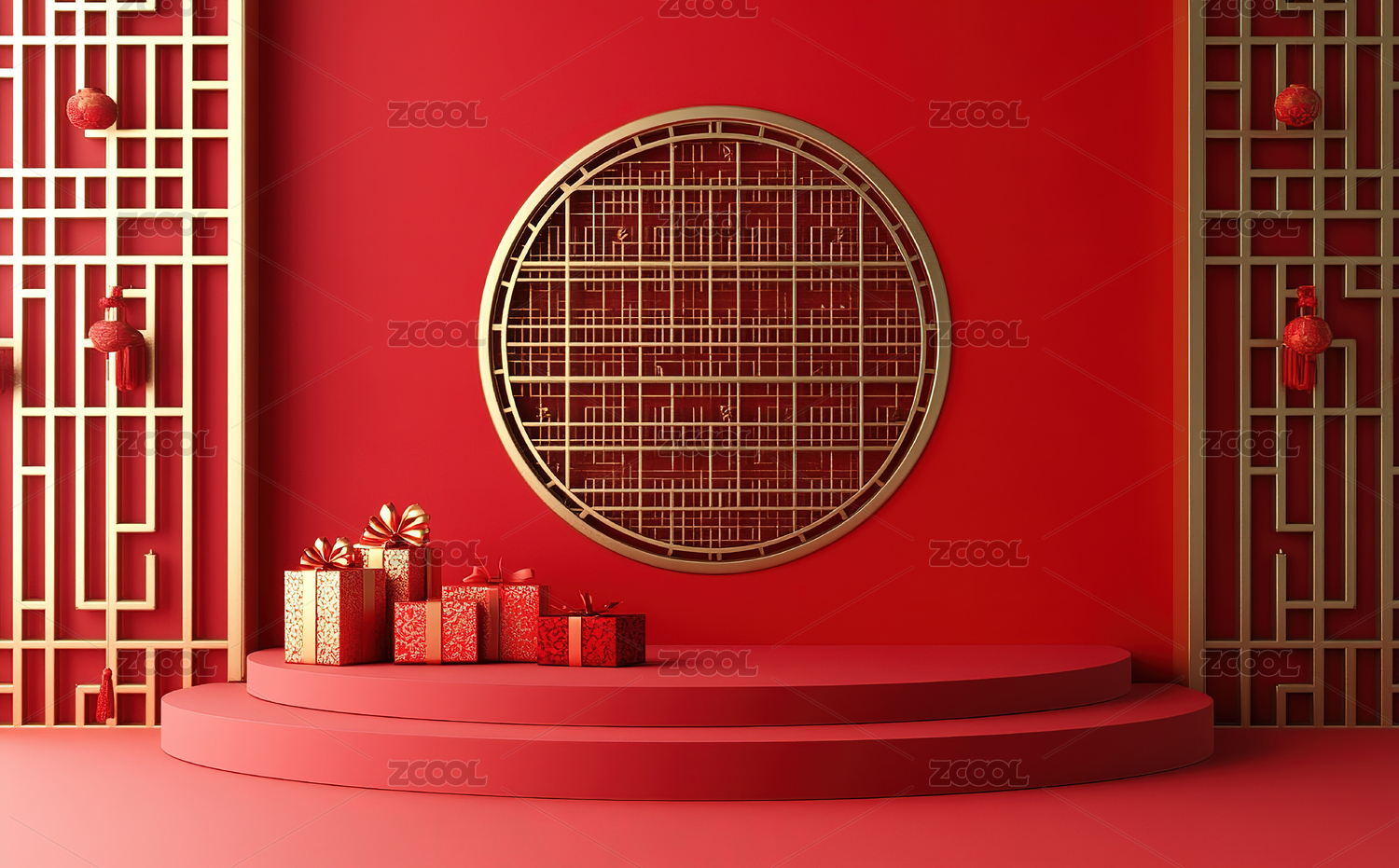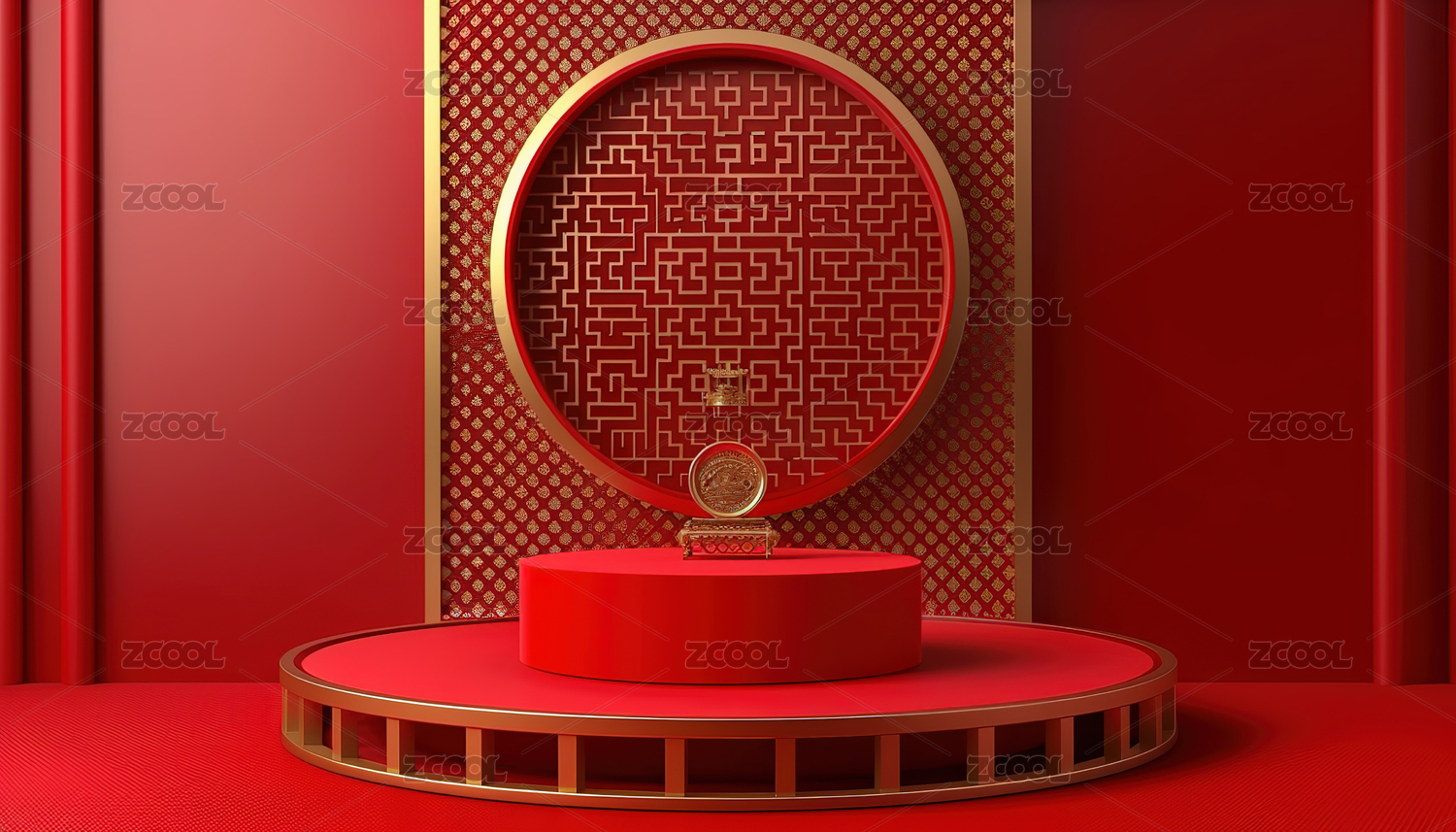产品展台,插画,C4D软件,三维图形,电子商务,背景,展览,红色,舞台,人造空间