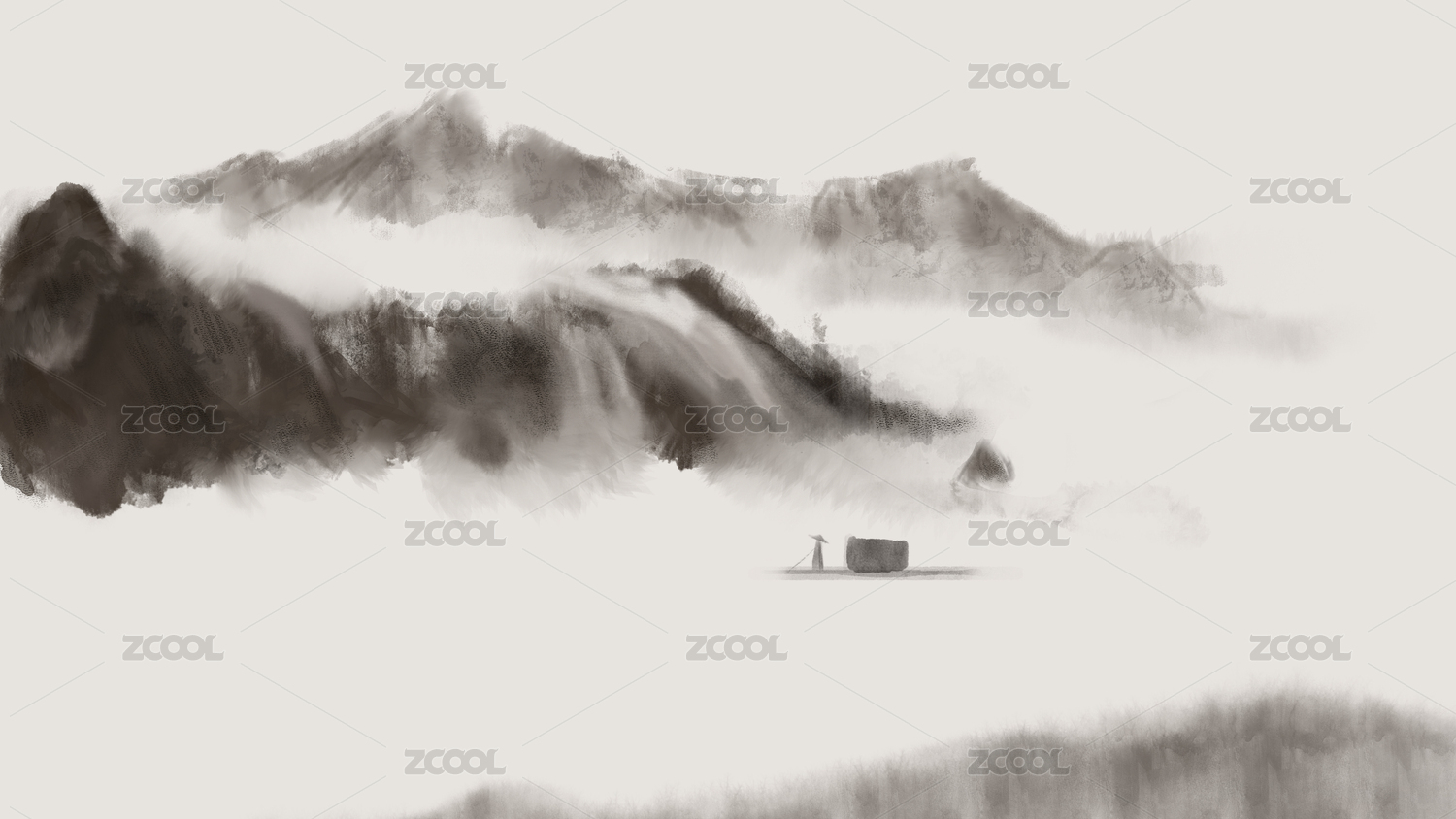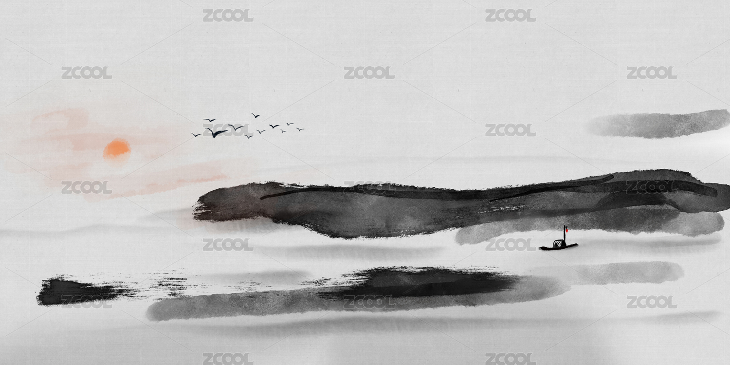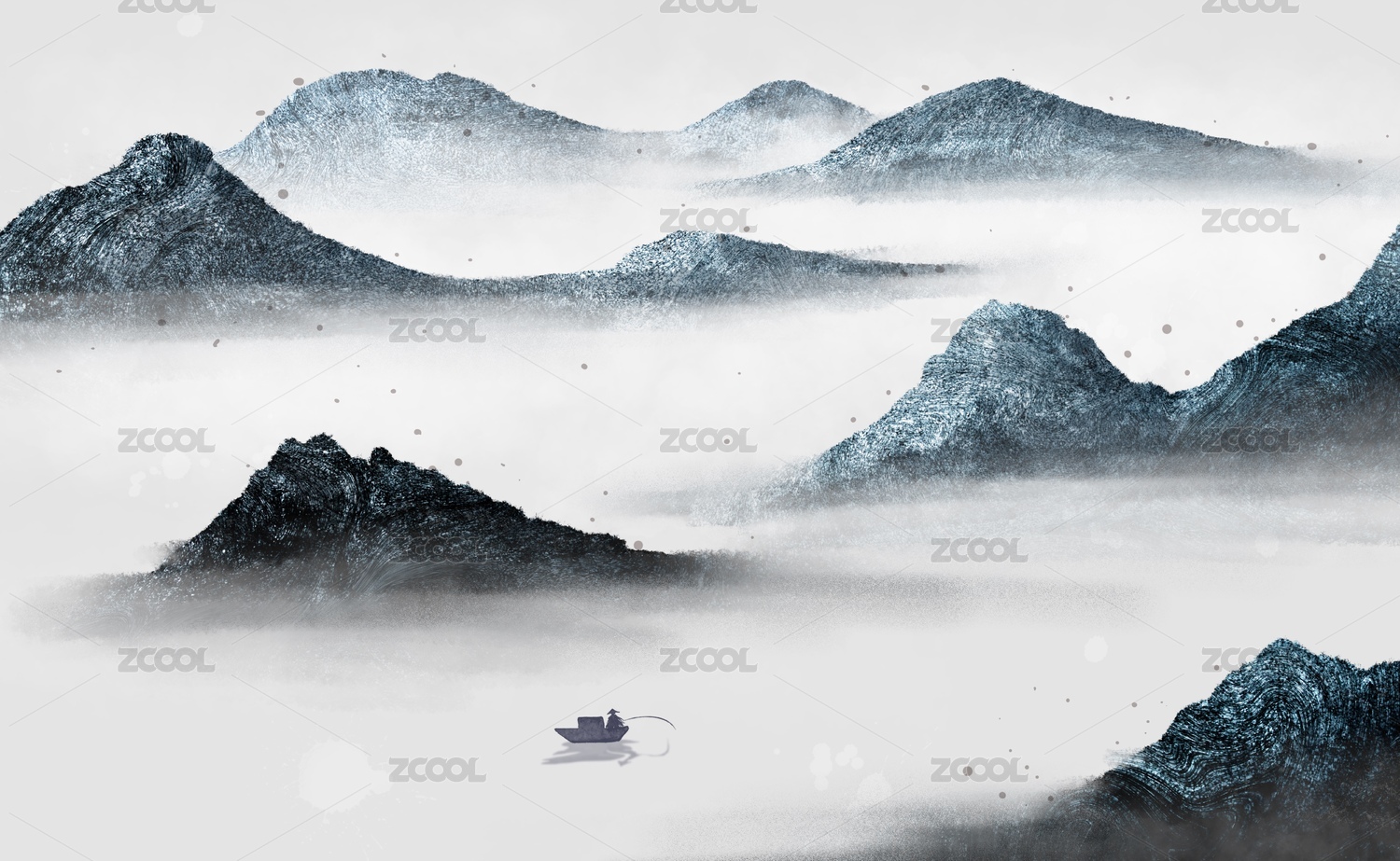写意,意境,水墨,山水画,山水,禅意,湖泊,群山,自然,远山