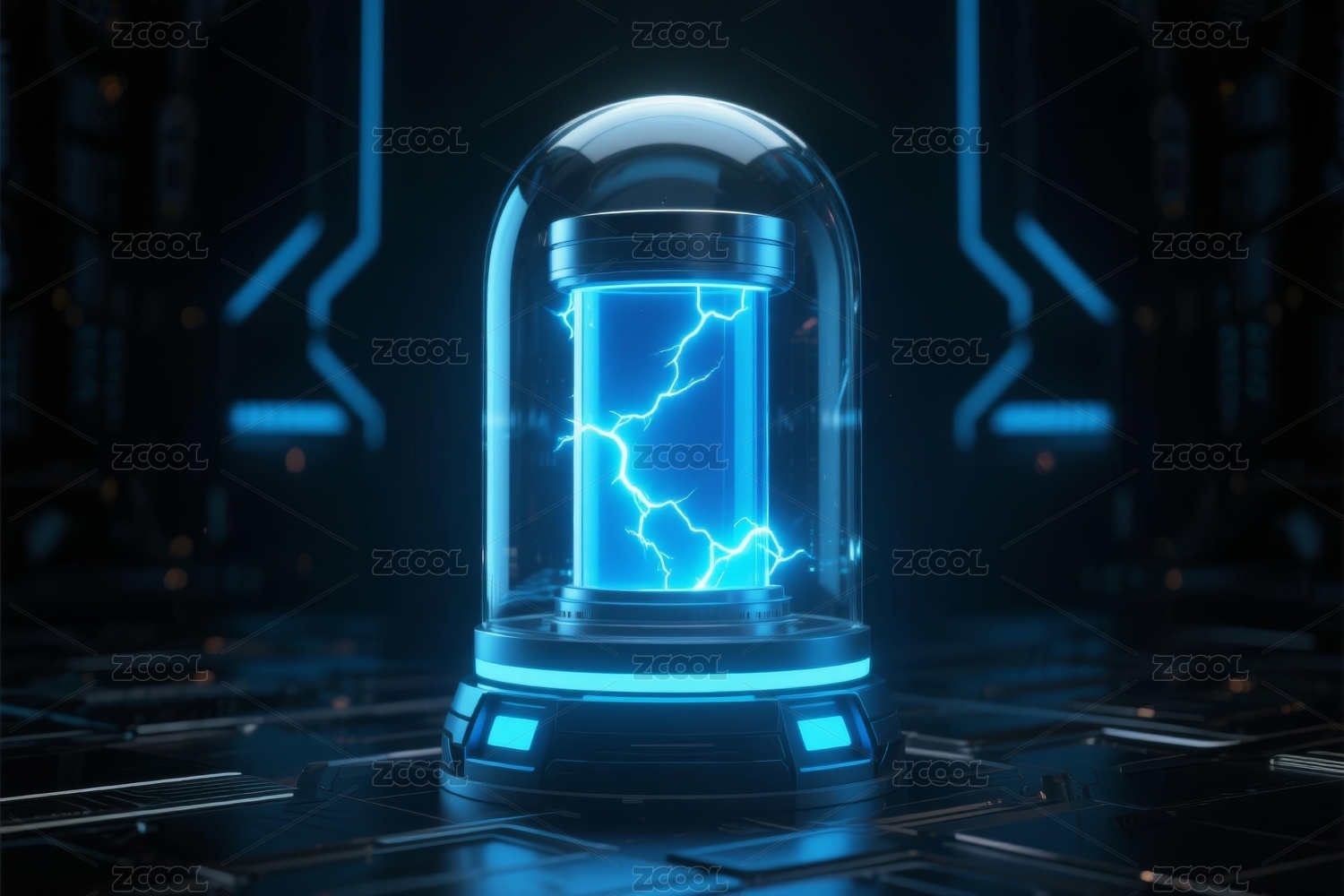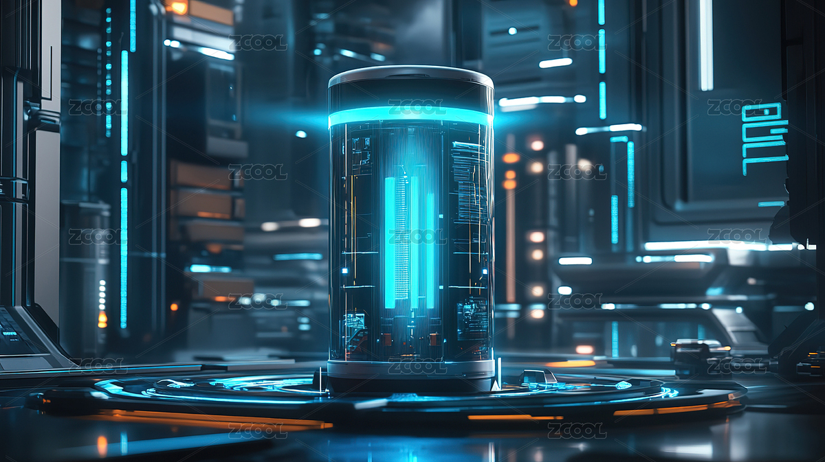 未来科技感的蓝色圆柱物体
