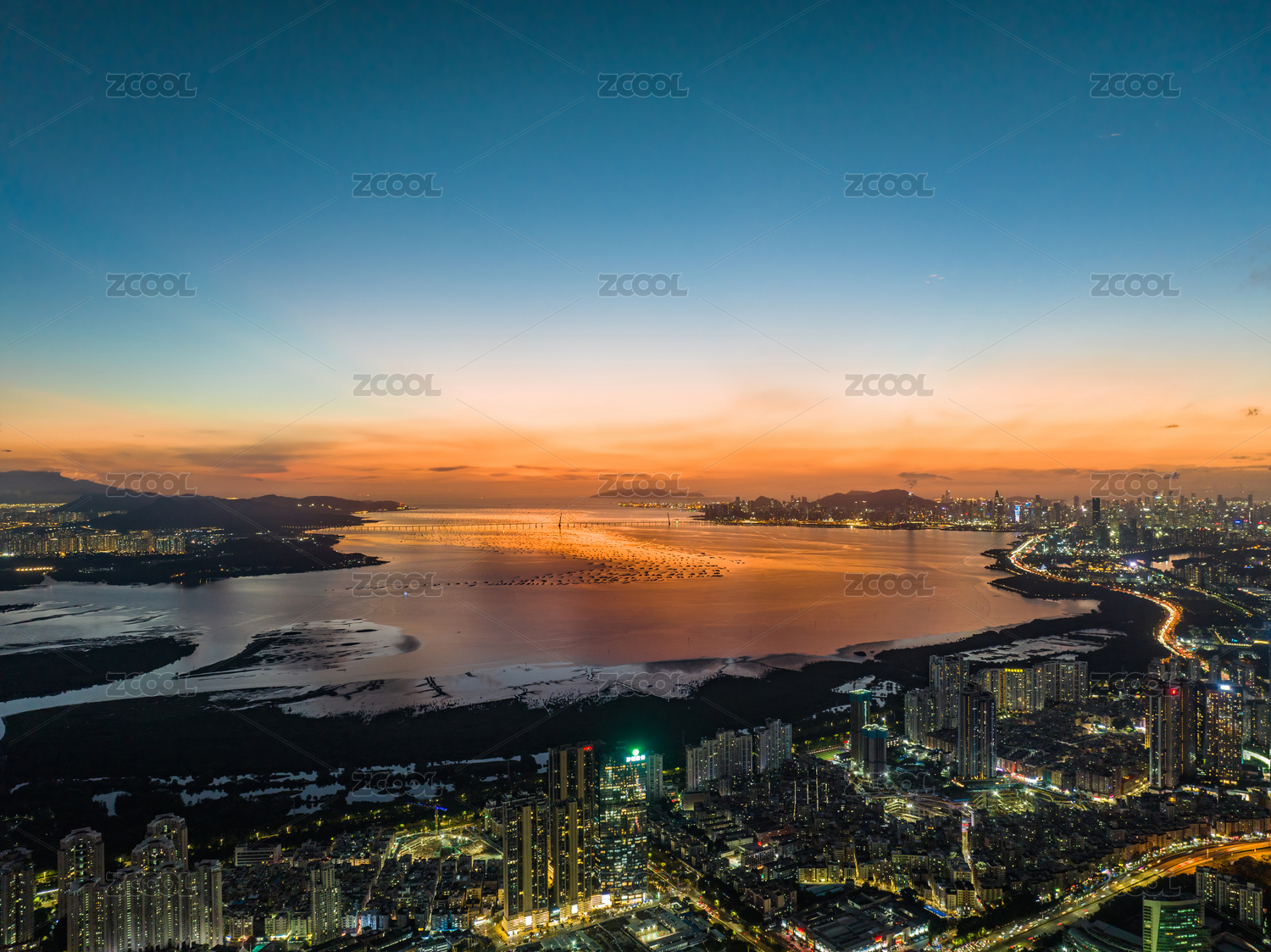 城市,城市天际线,高视角,日落,建筑外部,高楼,无人,市中心,天空,色彩