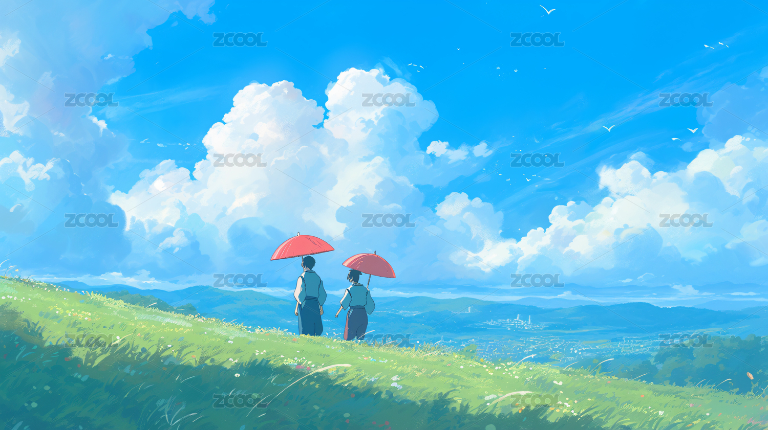 情侣动漫手绘插画