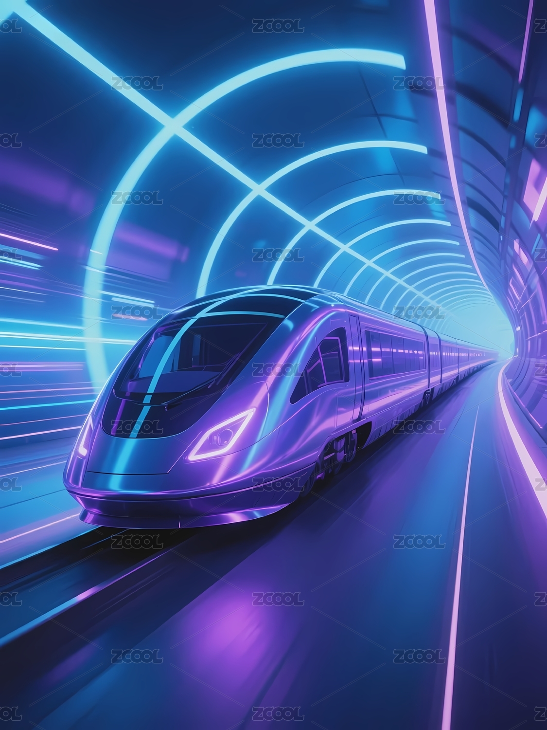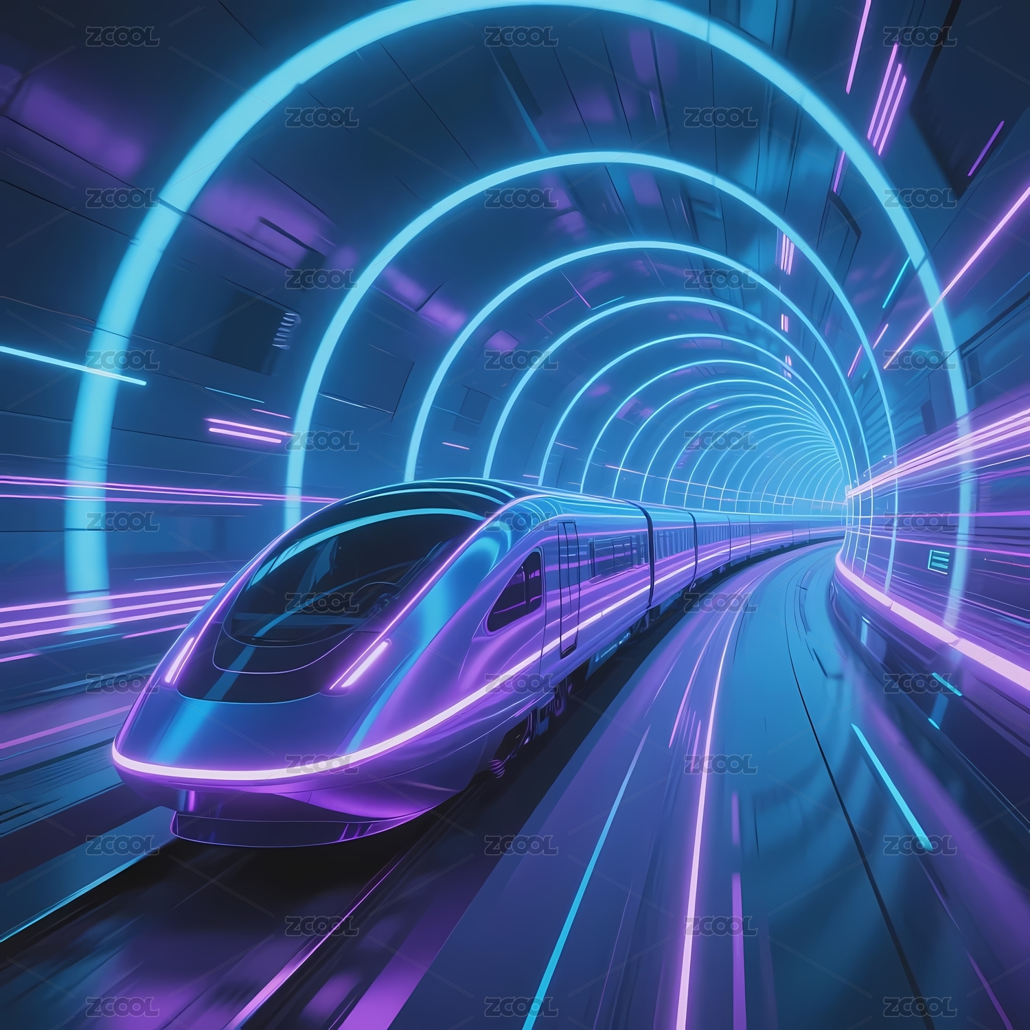 未来列车在霓虹隧道中疾驰