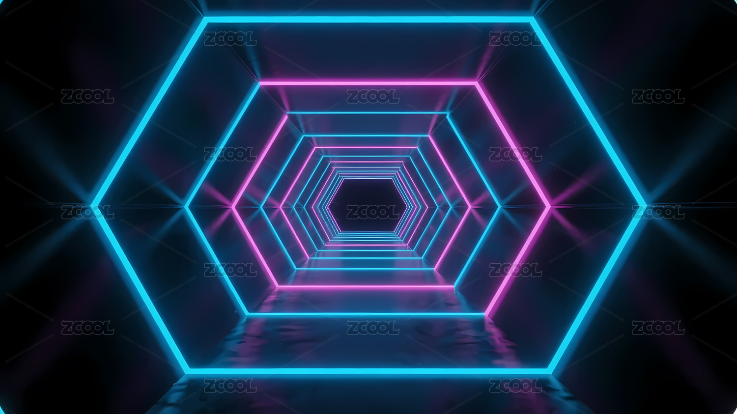 抽象霓虹灯光建筑空间走廊背景时尚朋克摇滚