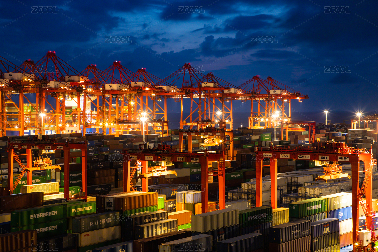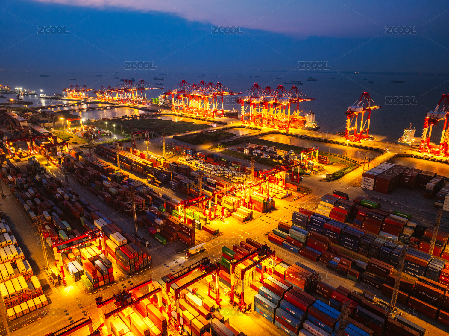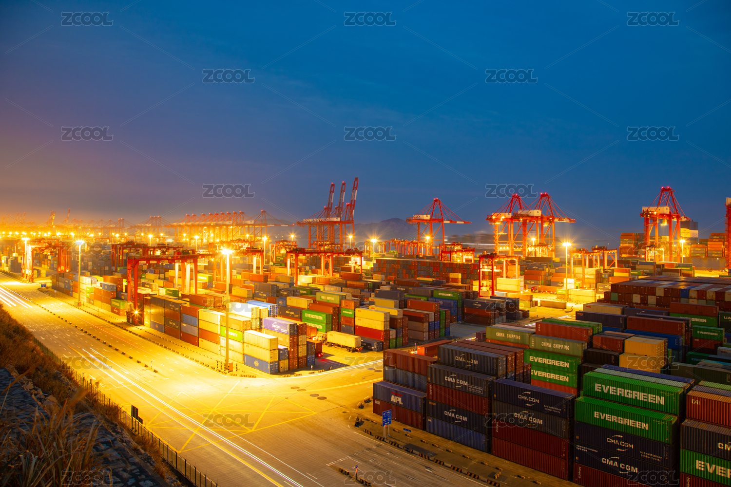 上海市洋山深水港-国际集装箱货运码头夜景