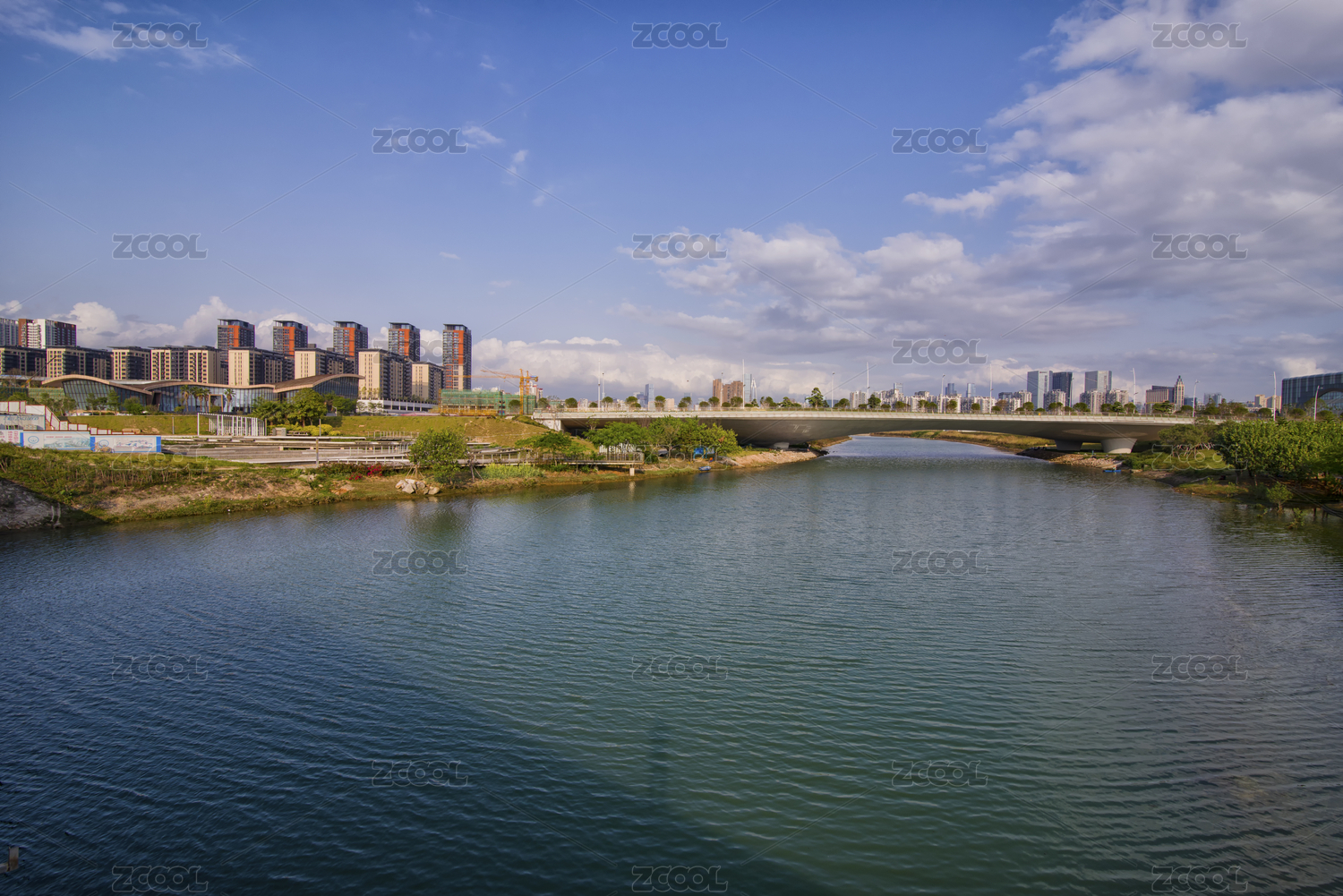 广州南沙蕉门公园蕉门河岸城市摩天大楼建筑
