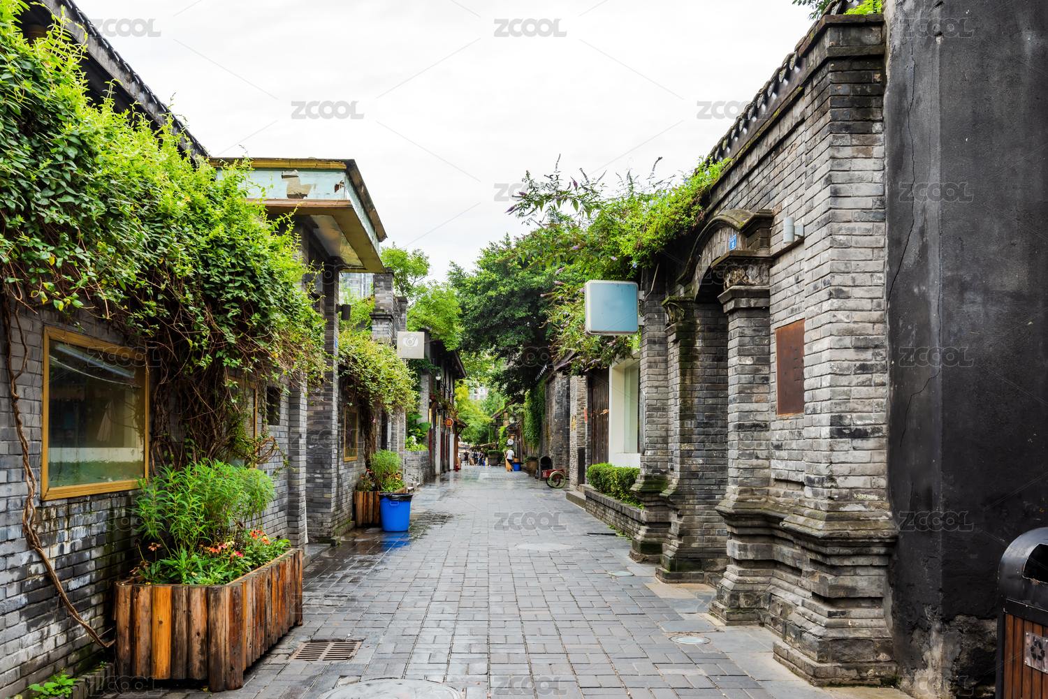 中国四川成都老建筑步行街宽窄巷子街景