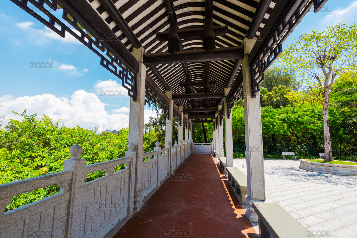 南宁狮山公园休闲凉亭休息长廊中式传统建筑