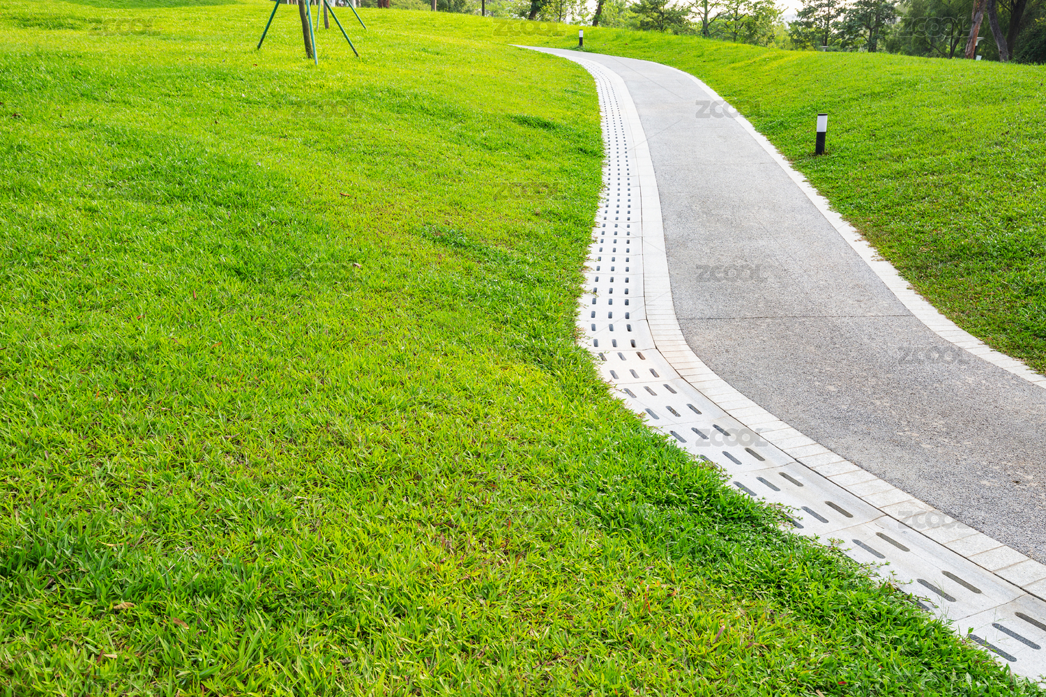 中国深圳市宝安西湾红树林公园的草坪及休闲走道风光