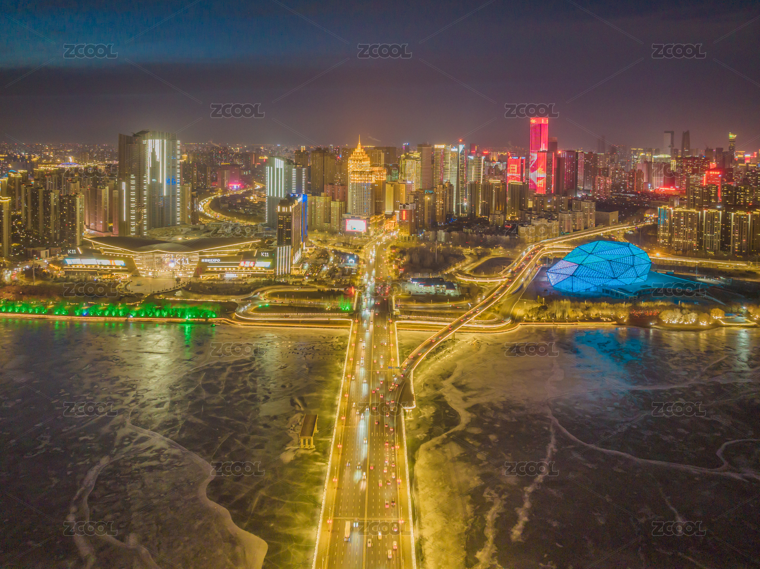 冬季辽宁沈阳青年大街五里河浑河桥航拍夜景