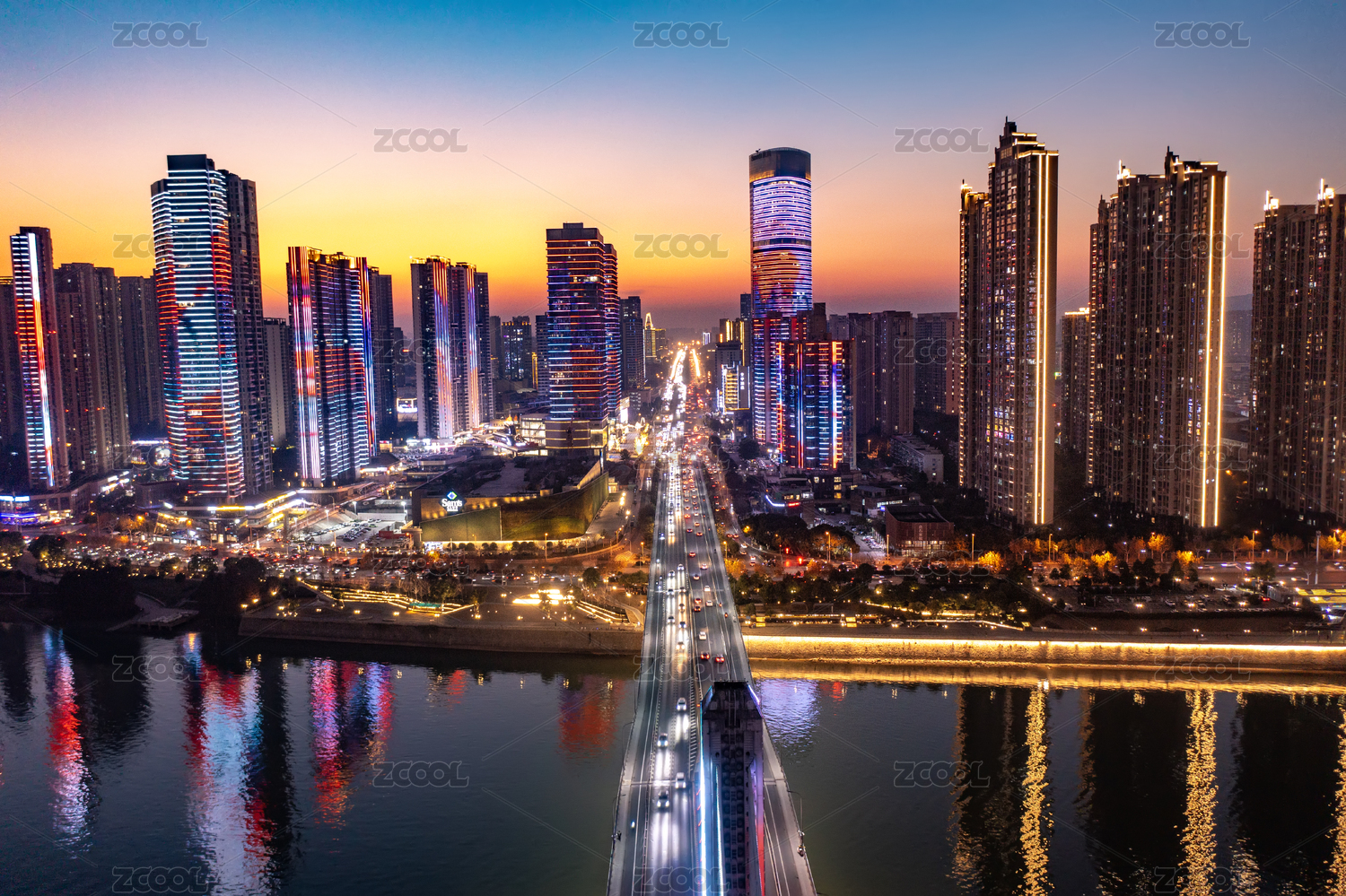 航拍长沙湘江银盆岭大桥城市夜景风光