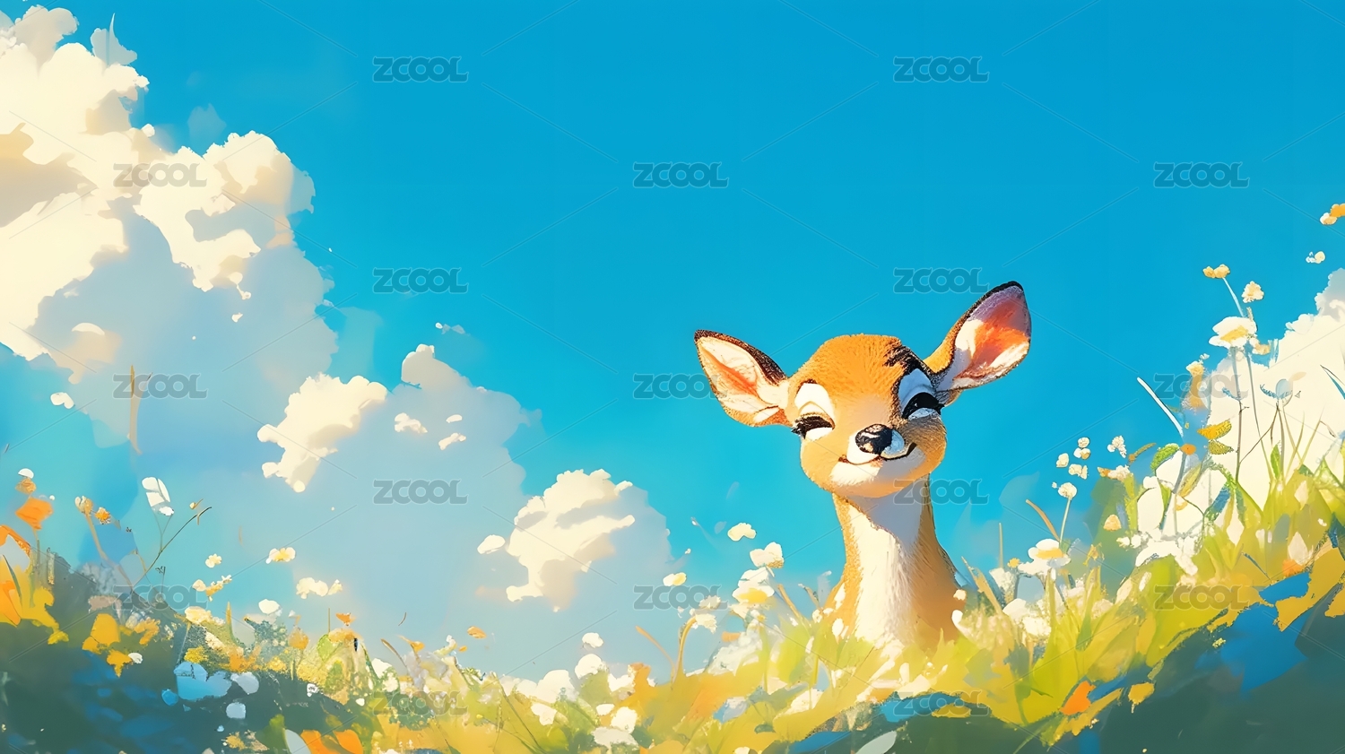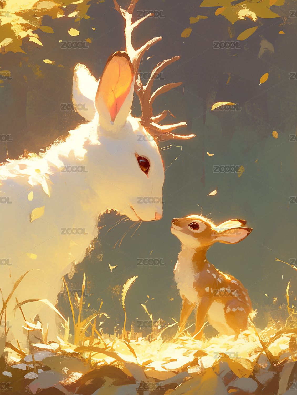 鹿,兔子,白兔,灵宠,萌宠,灵兽,生肖,动物,和谐,自然