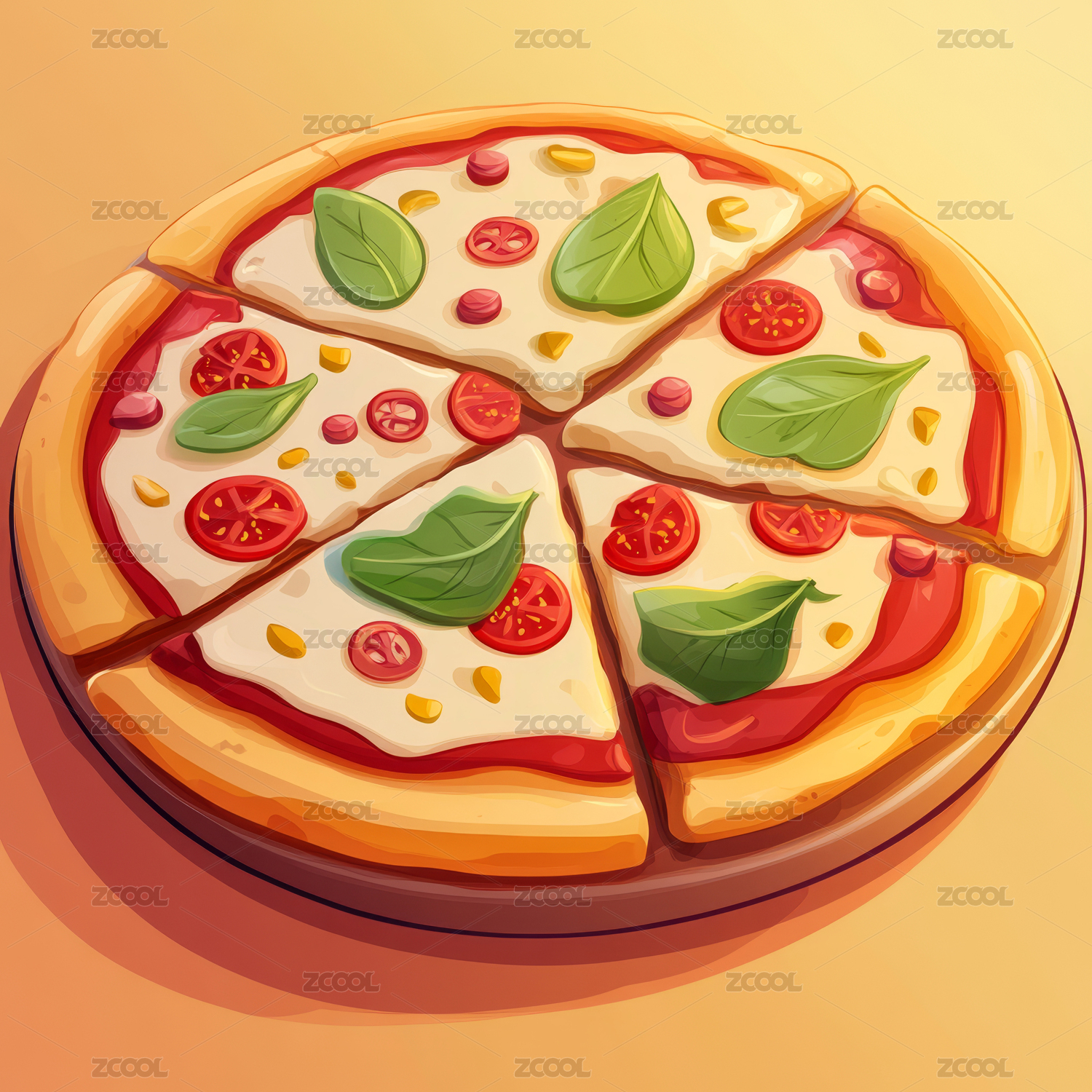 复古美味披萨芝士拉丝香肠片铺满饼面