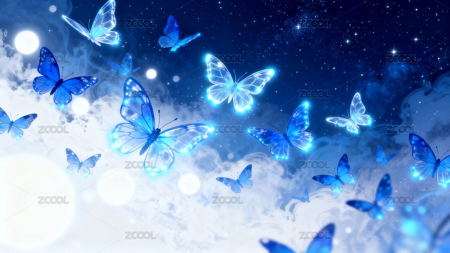 梦幻浪漫唯美展翅飞翔的魔法蝴蝶图案印花