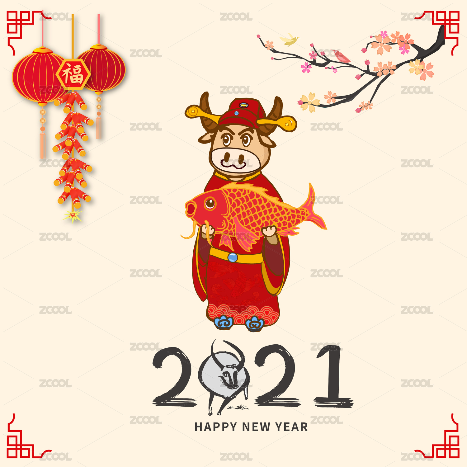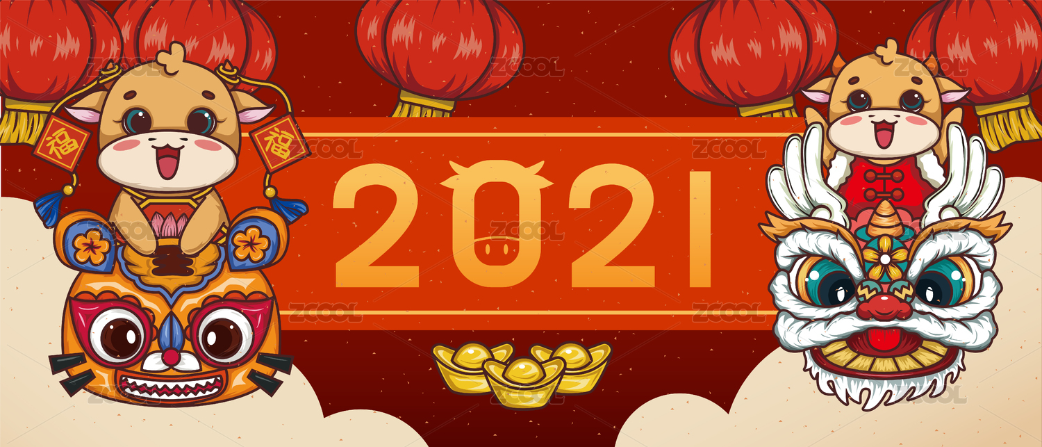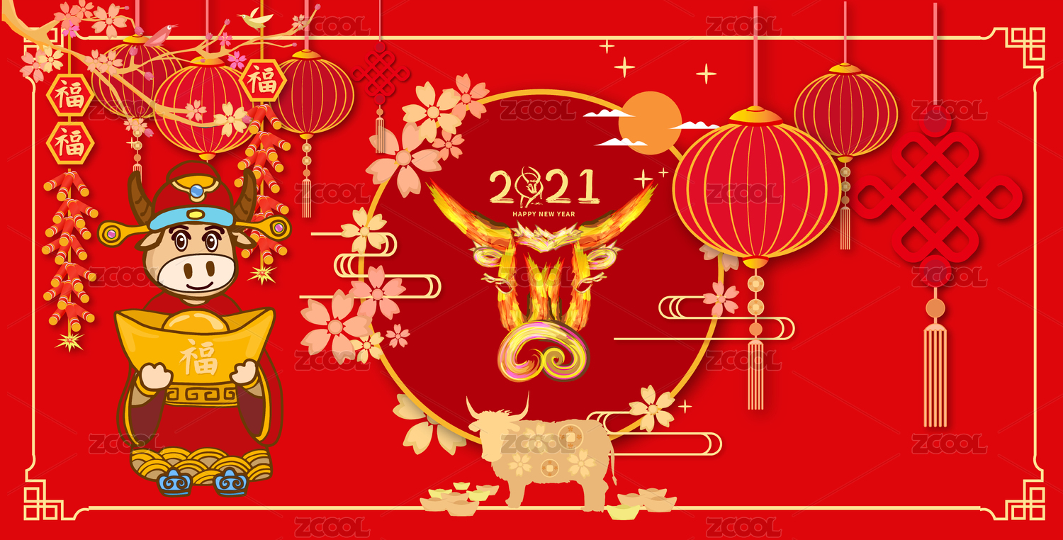 牛年,2021,春节,插画,新年,节日,传统,元旦,祝福,年俗