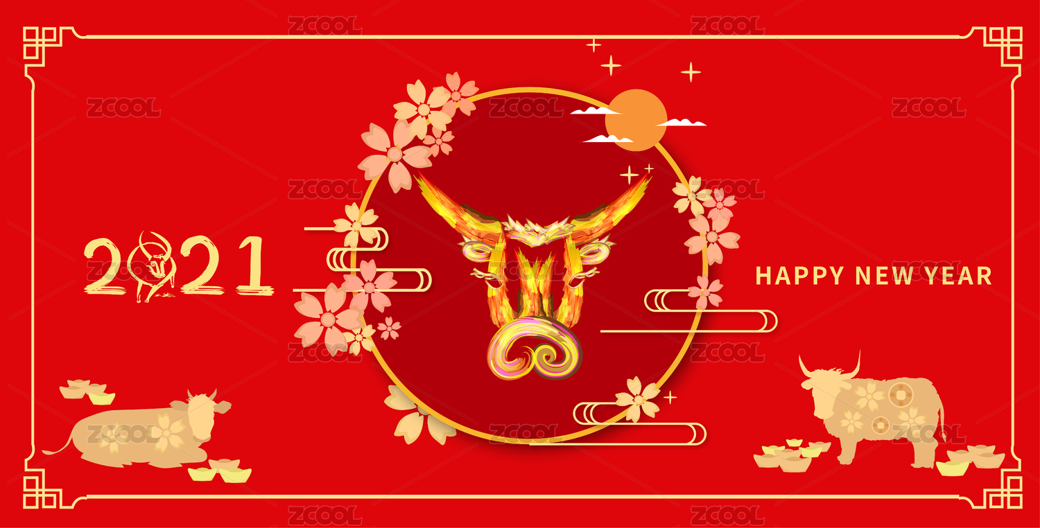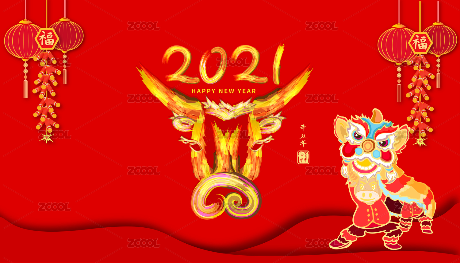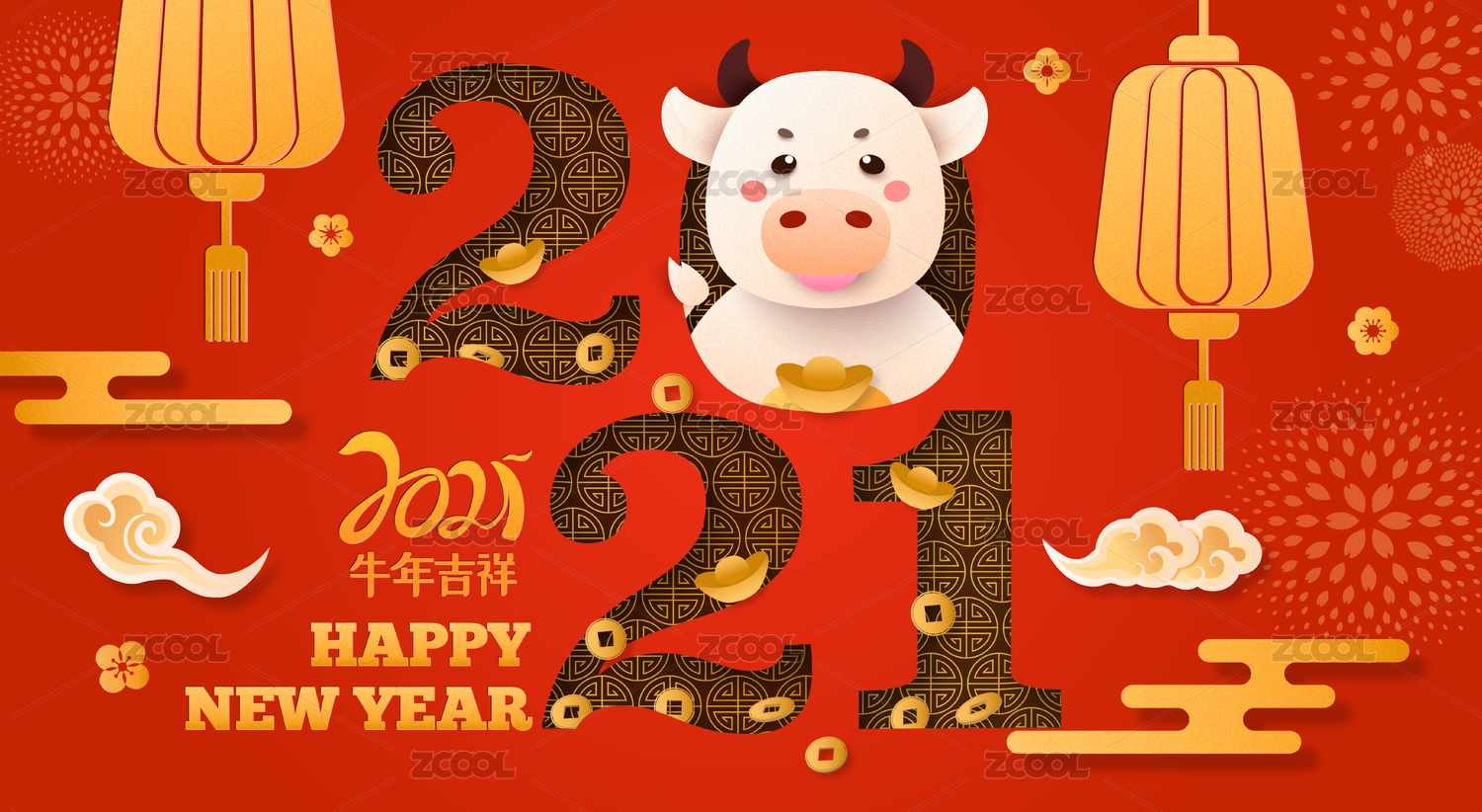 牛年,2021,春节,插画,新年,节日,传统,元旦,祝福,年俗