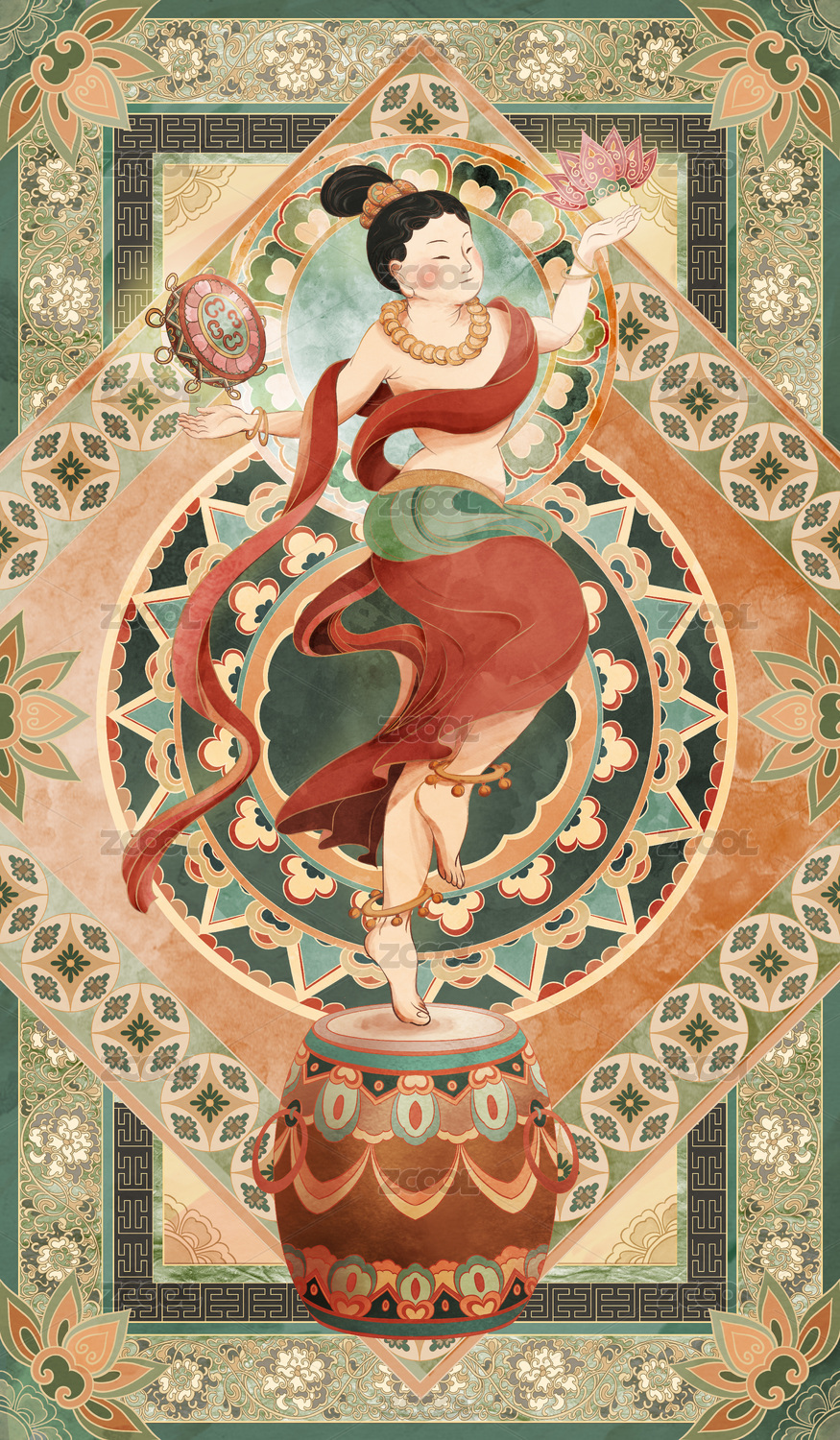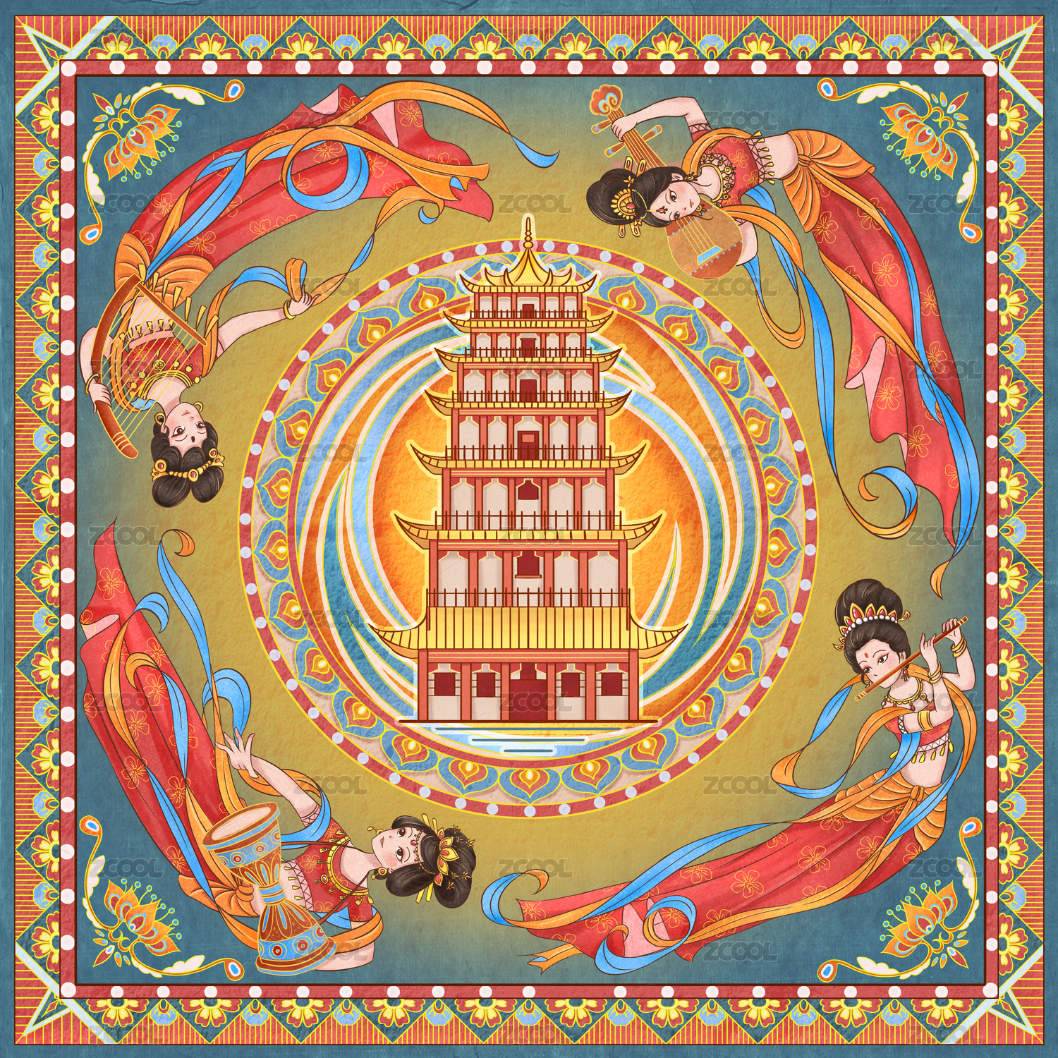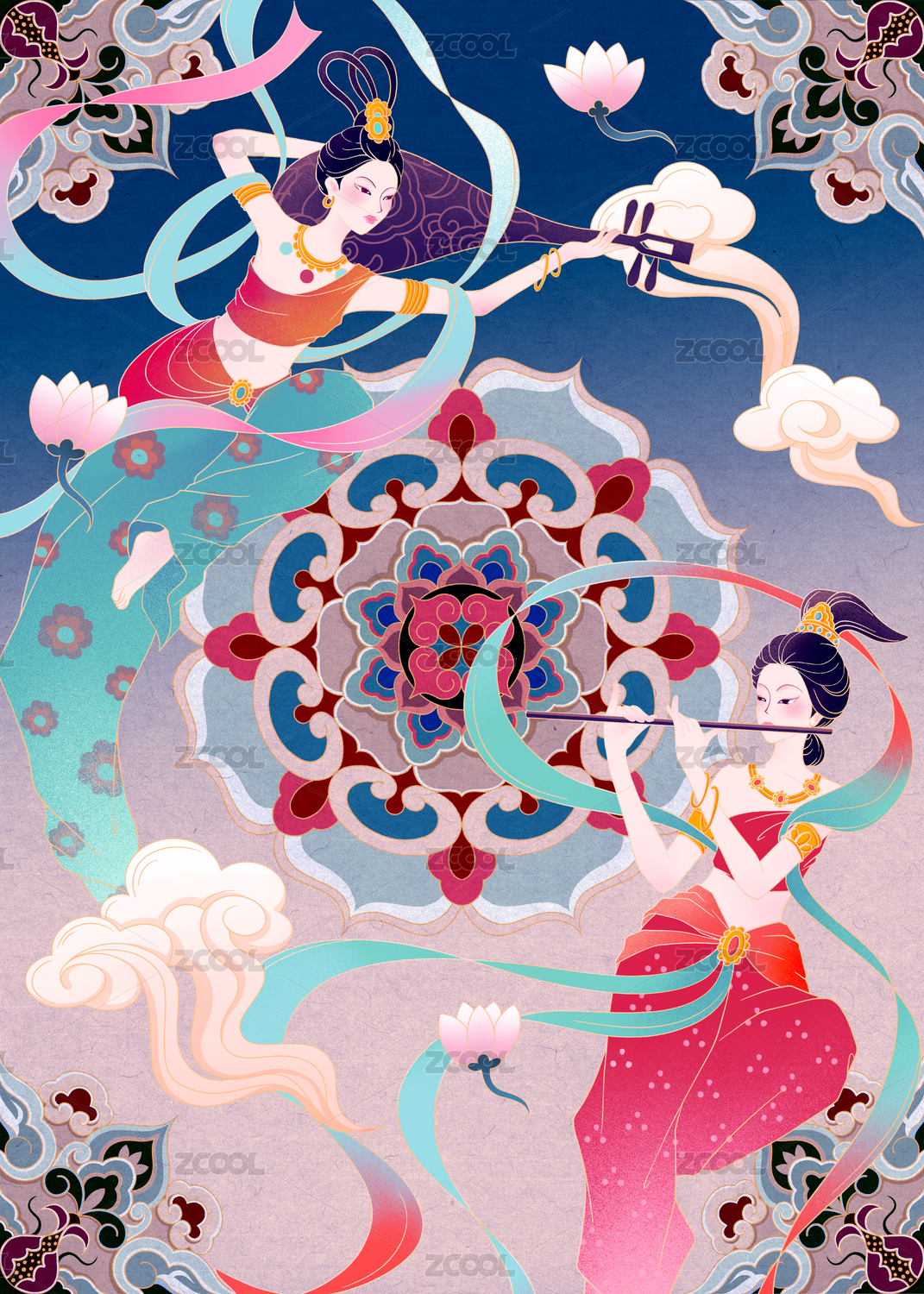 HEYYTGF2020,敦煌,国风,插画,飞天,古风,乐器,花纹,边框