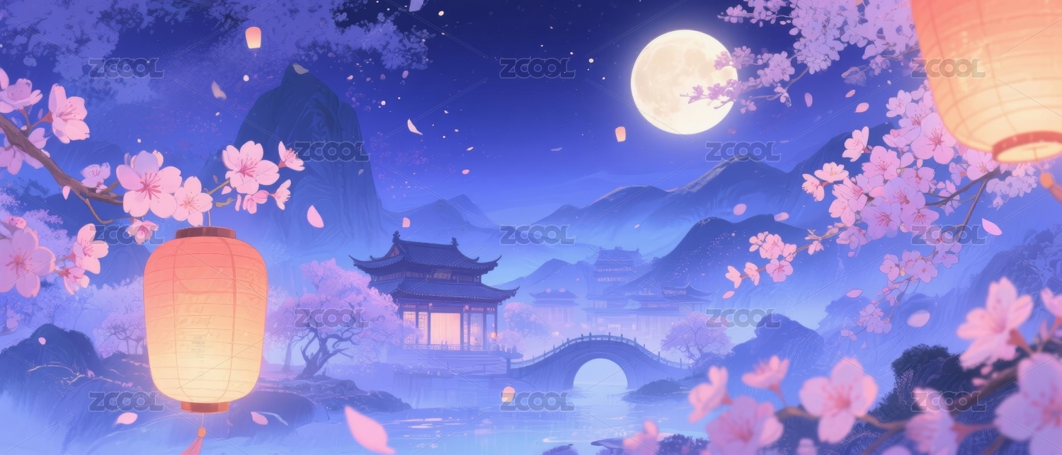 国潮插画,国潮建筑,艺术插画,AIGCFG,国潮艺术,风景水墨,国潮风,中国风,水墨画,插画