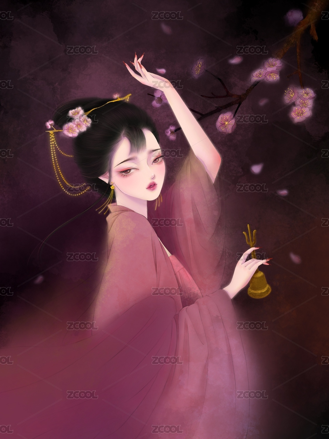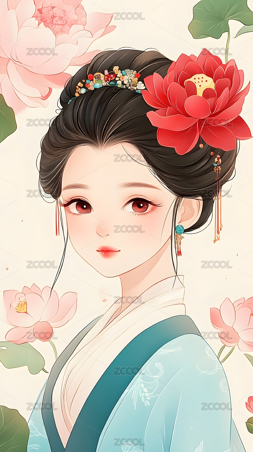 国潮,中国风,女孩,人物,插画,写意,创意,艺术,AIGCFG,古典