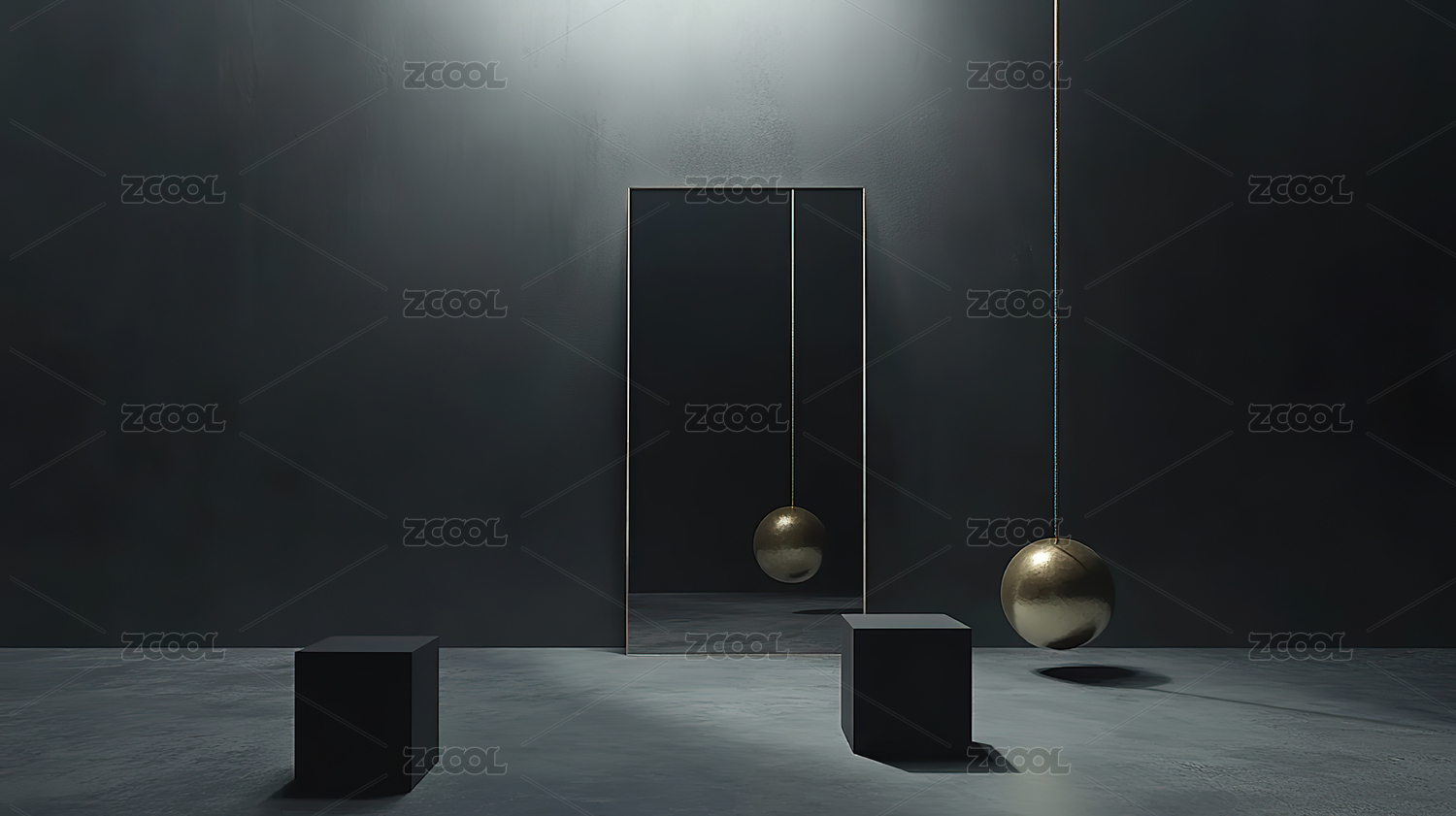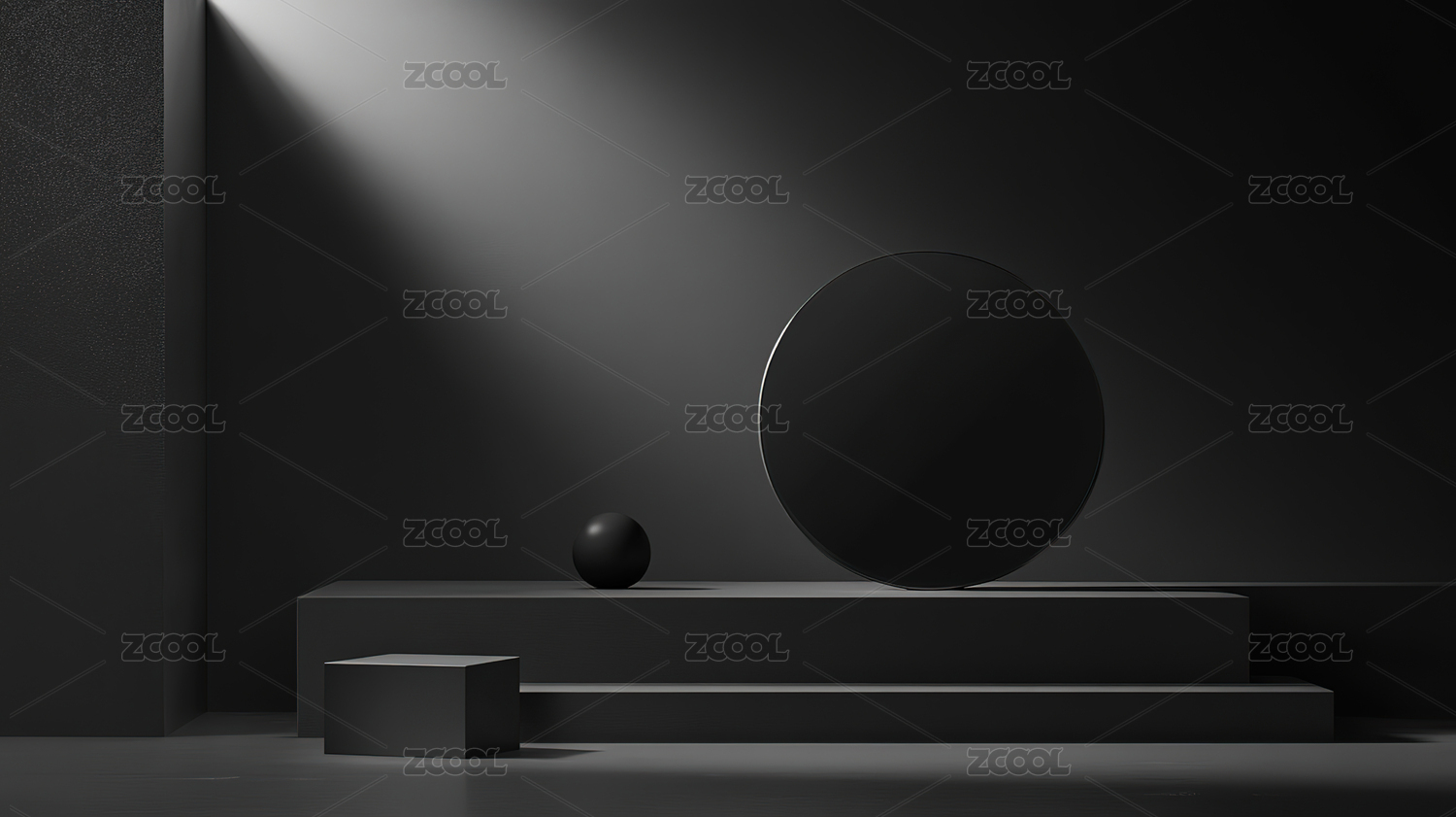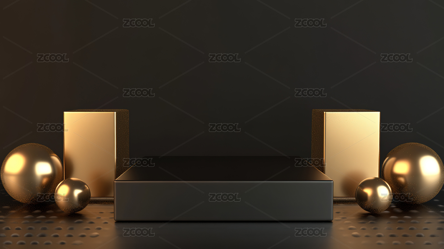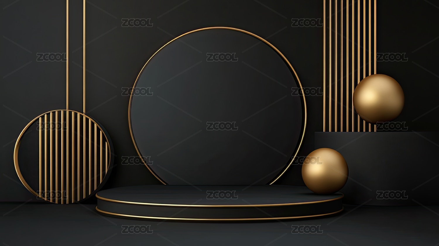 黑色圆形展台与金色几何装饰