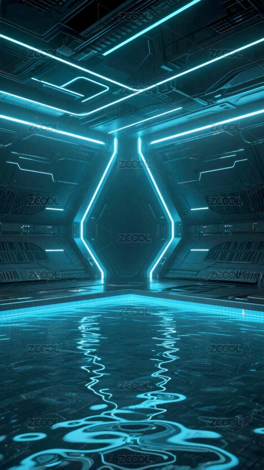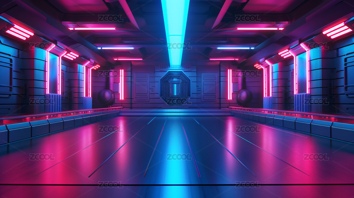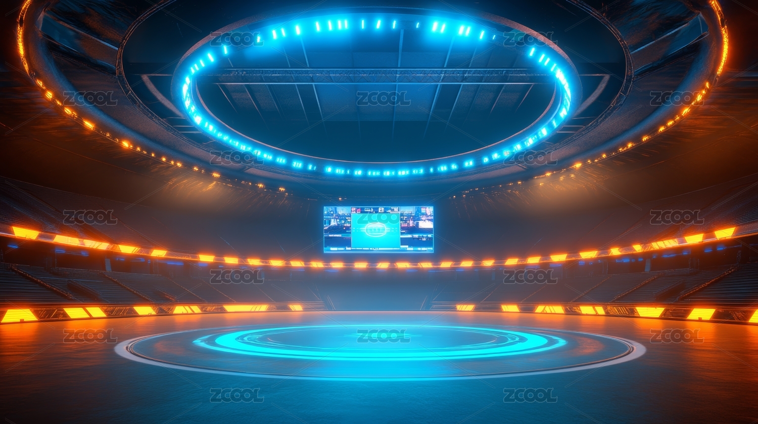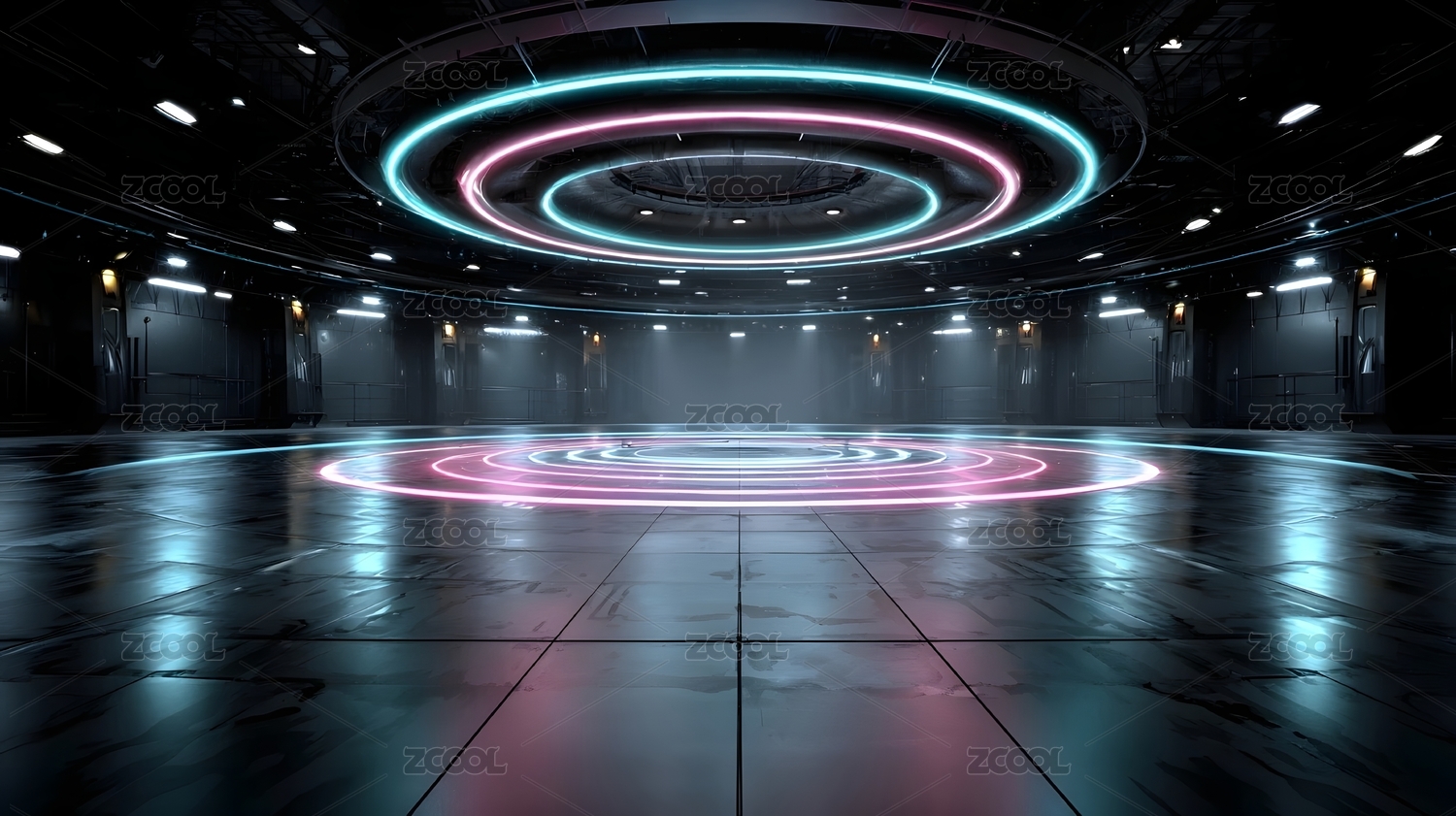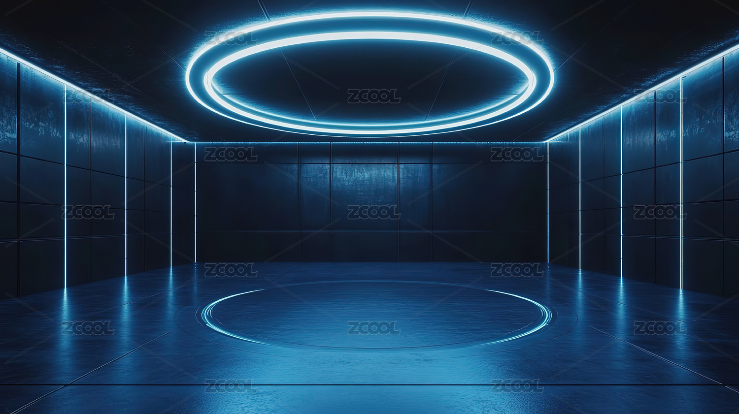 3D,圆形,地板,地面,场景,室内,展示,房间,插画,未来感