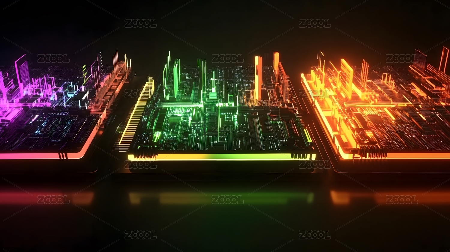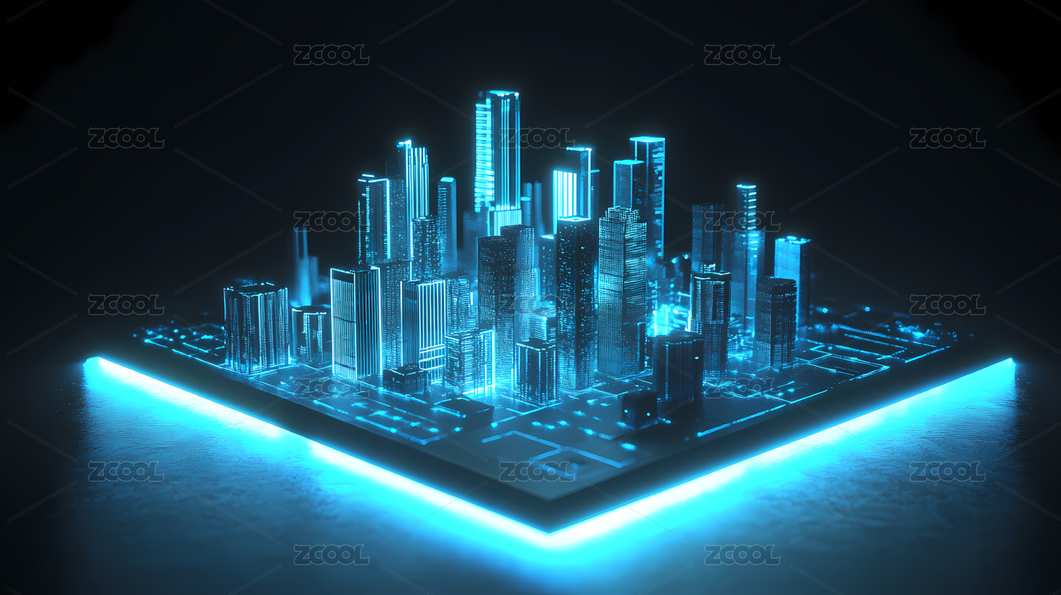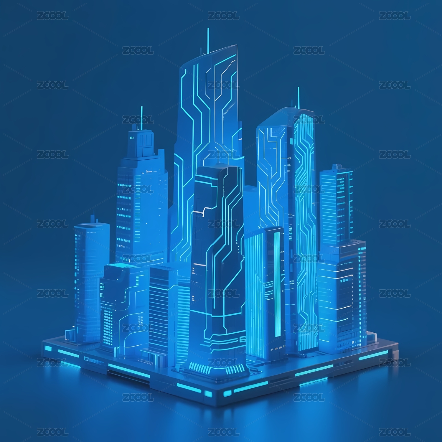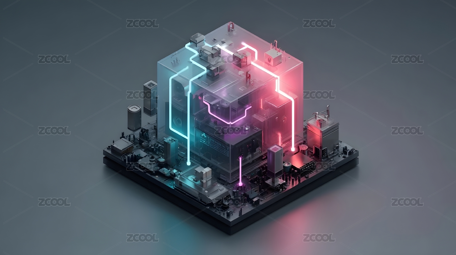 3D,插画,玻璃,科技,蓝色,透明,霓虹,电子,数字,互联网