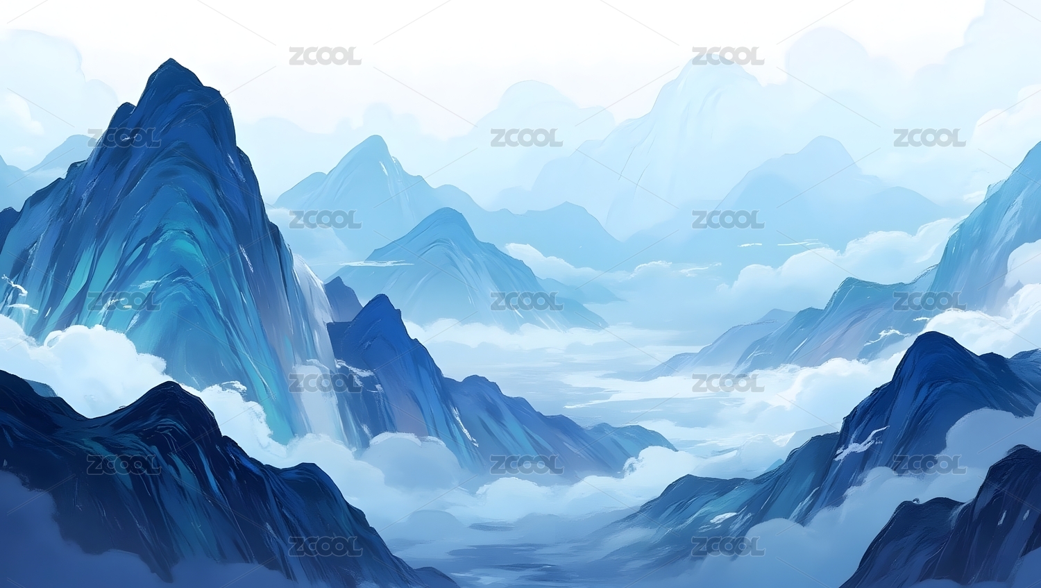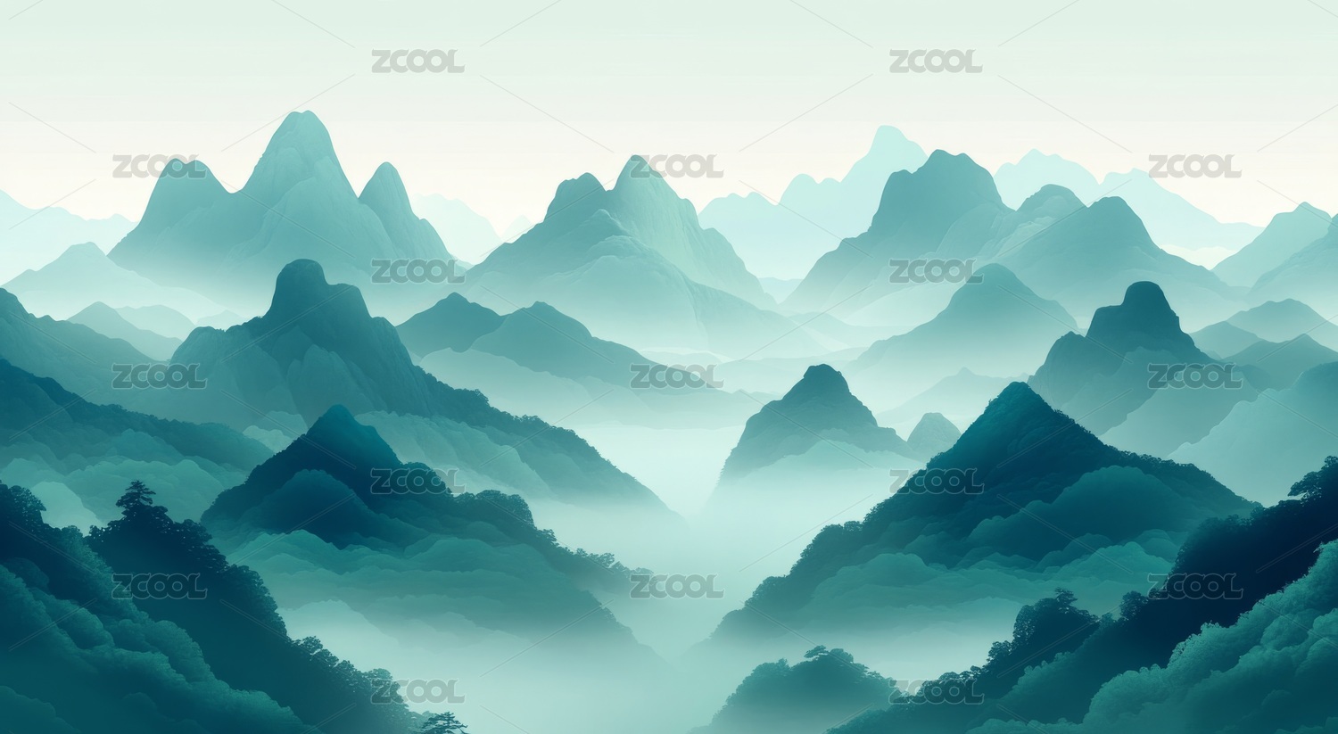 新国风古风国潮青绿山水画水墨传统背景壁纸