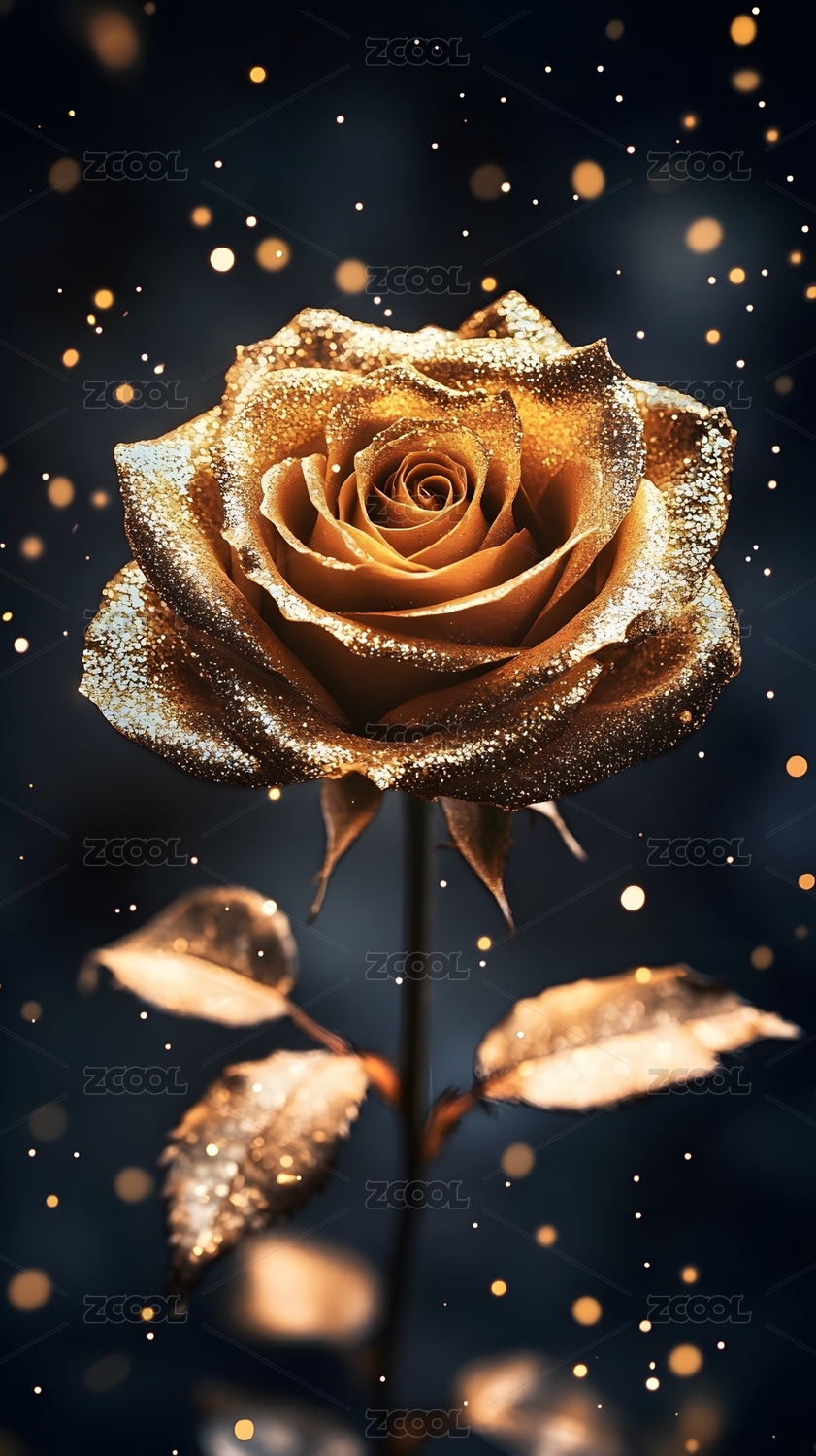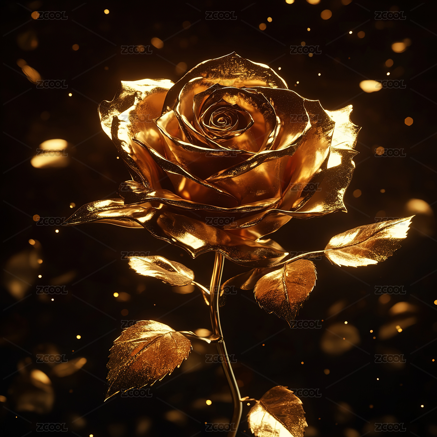 玫瑰花,装饰,美丽,3D,金色,花,花朵,金属,叶子,植物