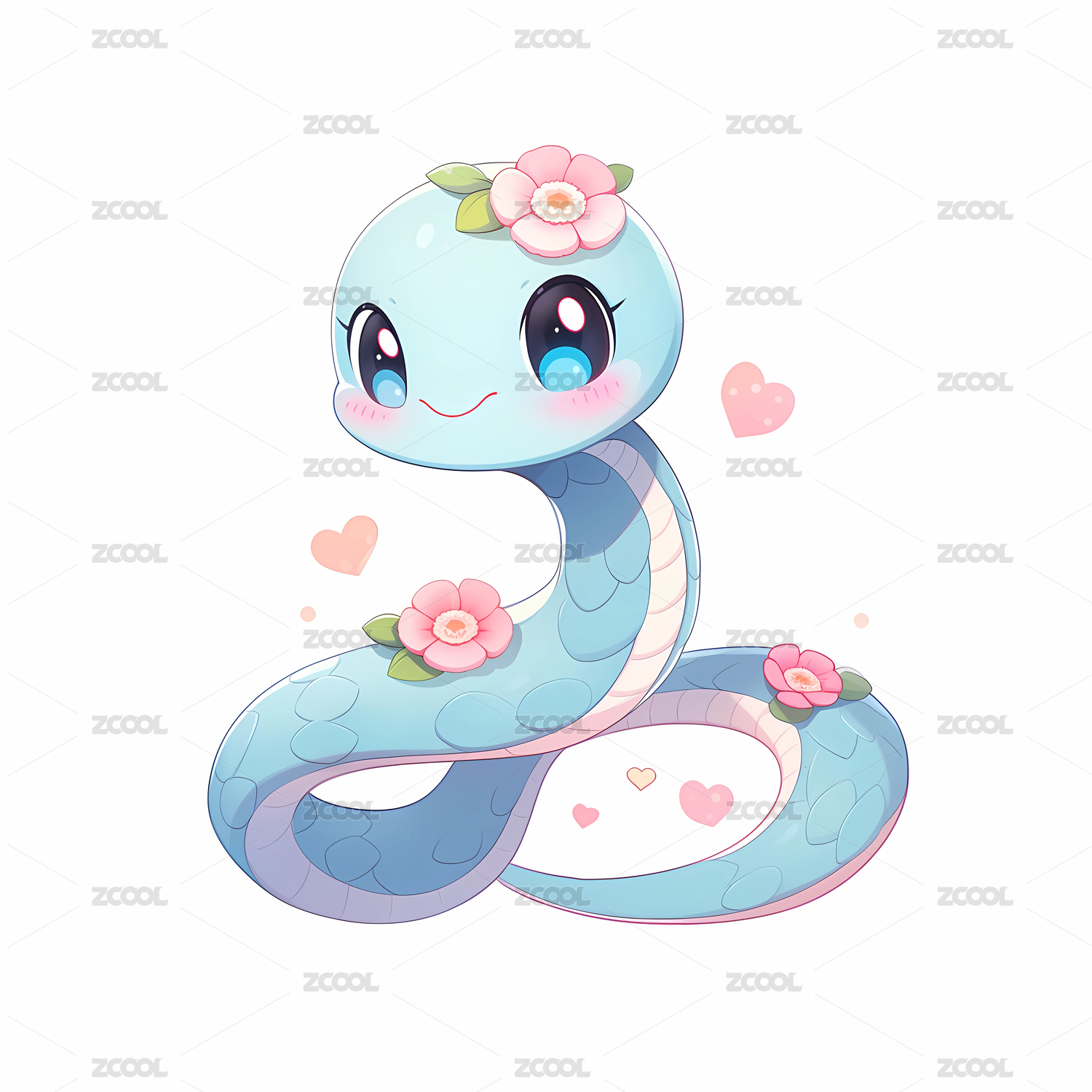 可爱开心的中国风花朵装饰卡通生肖蛇