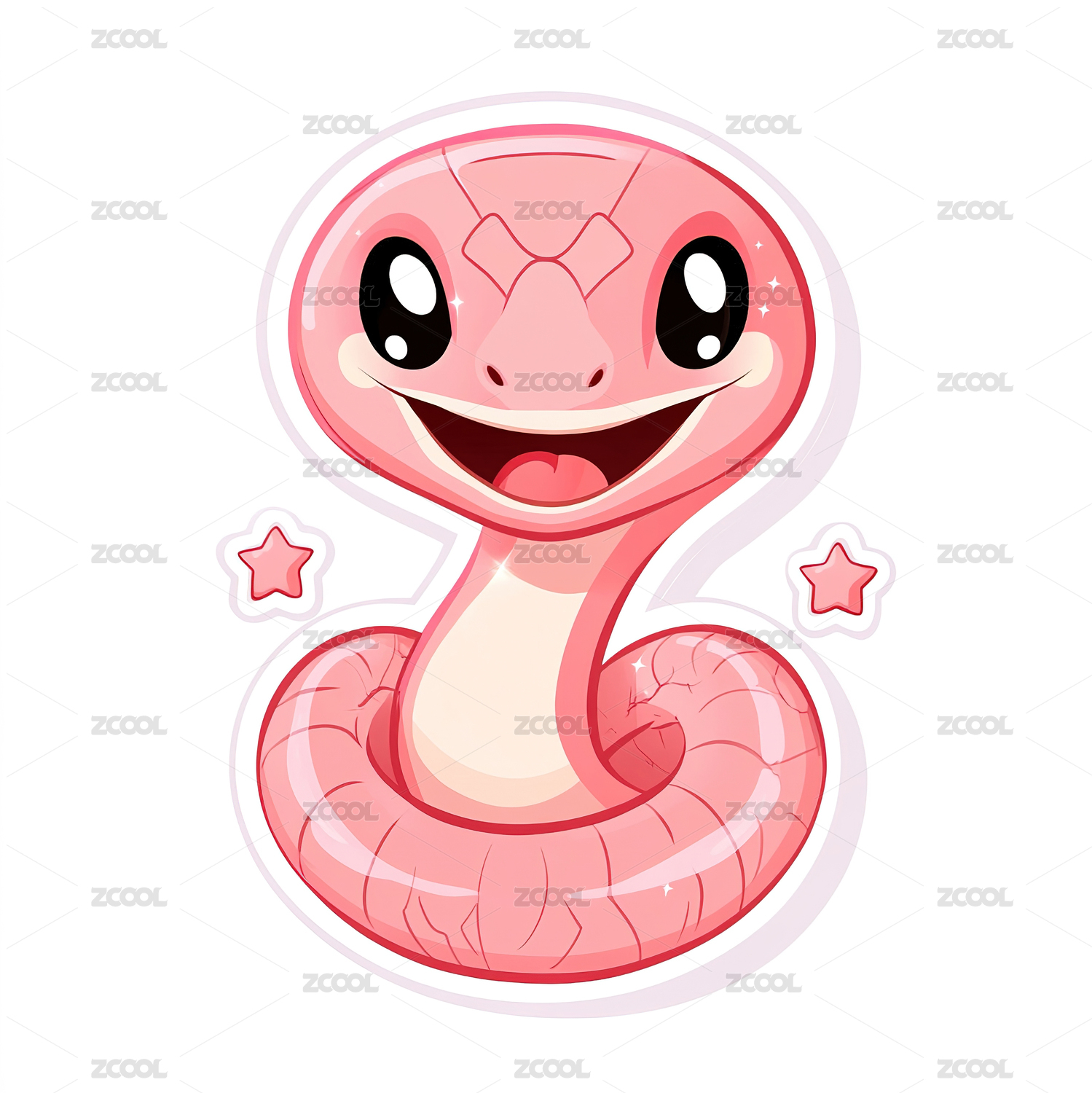 可爱,插画,生肖蛇,蛇,活泼,开心,彩色,调皮,简洁,浅粉色