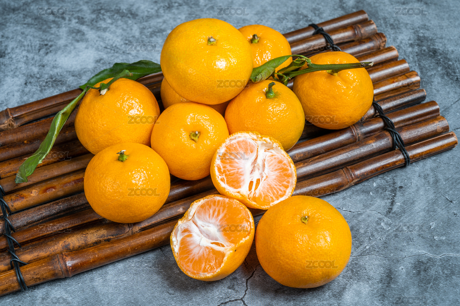 木纹桌竹排上摆放的沃柑