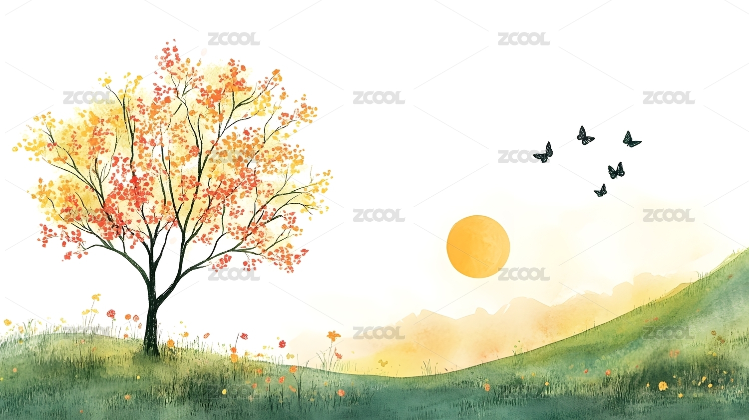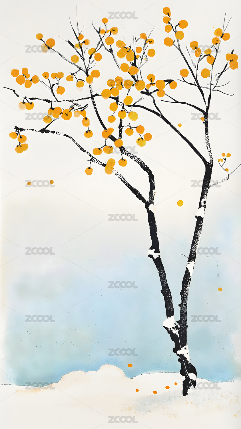 手绘,插画,中国画,水墨画,田园,风景,风光,树,一棵树,枯树