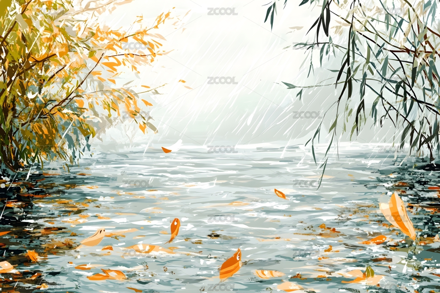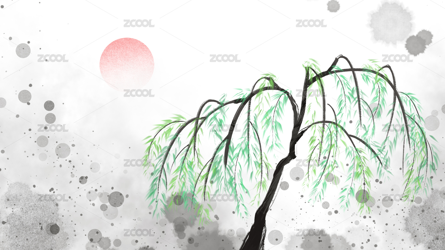 中国风春分抽象艺术柳树泼墨晕染诗意水墨画