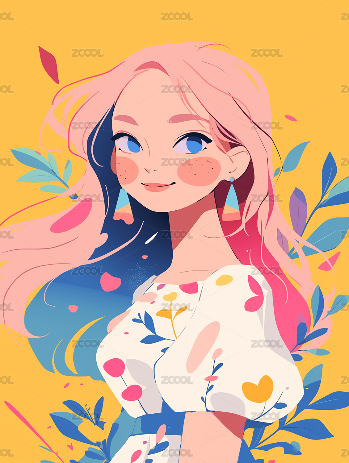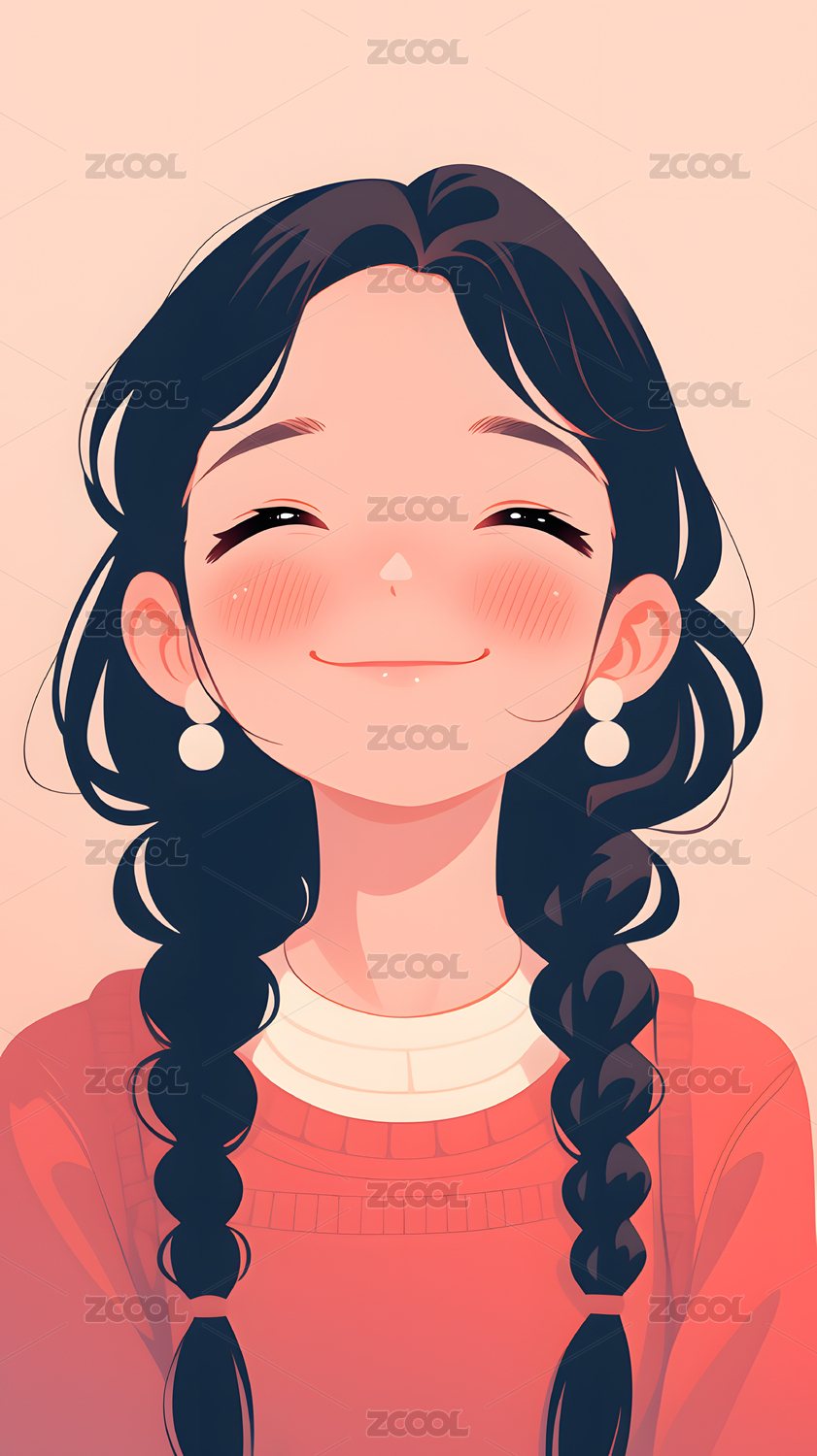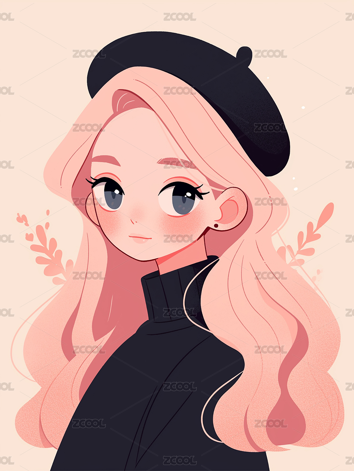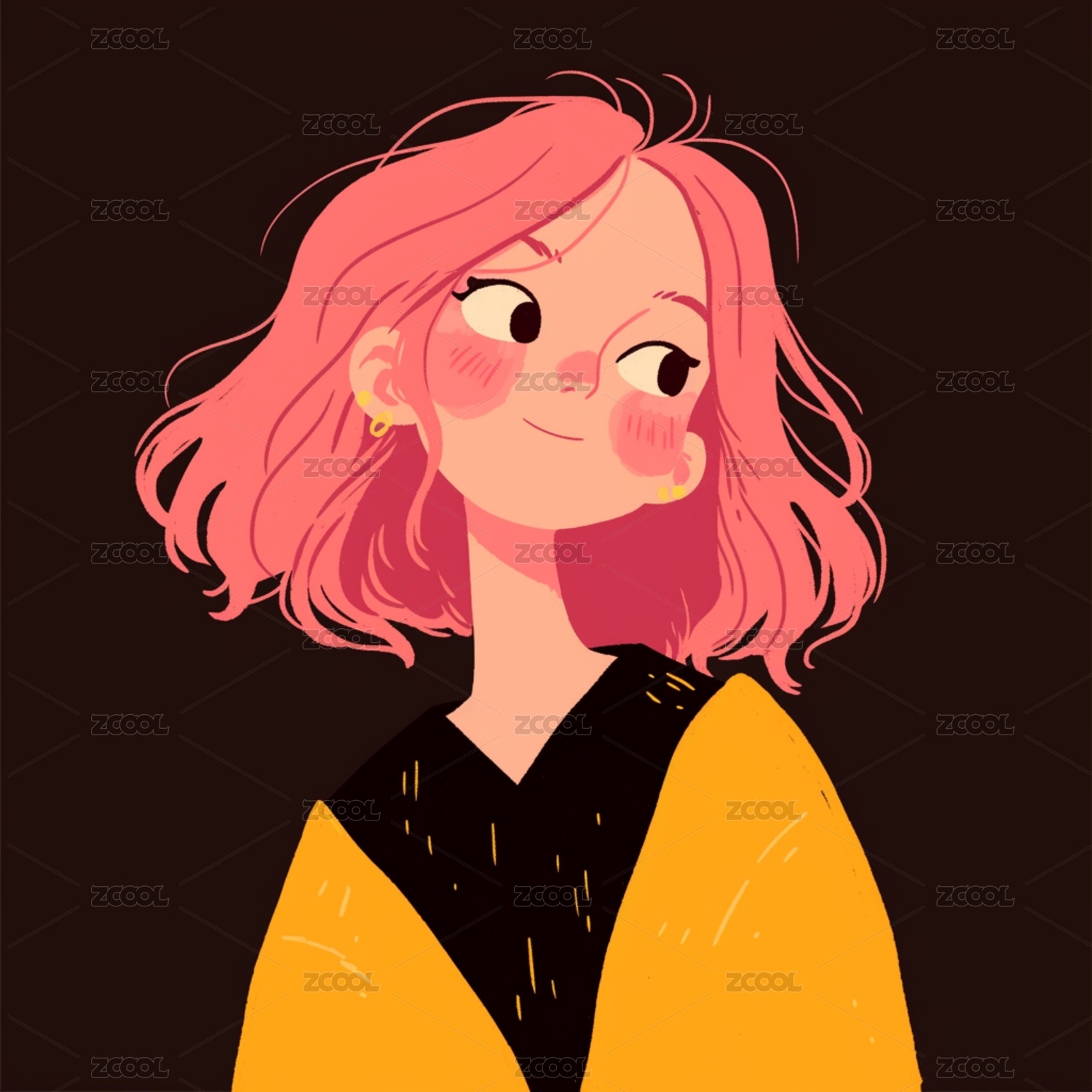 粉黑少女时尚肖像大头照矢量扁平化设计背景