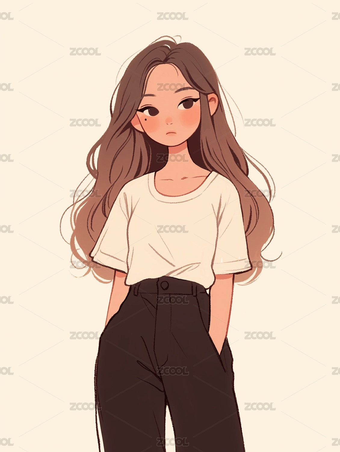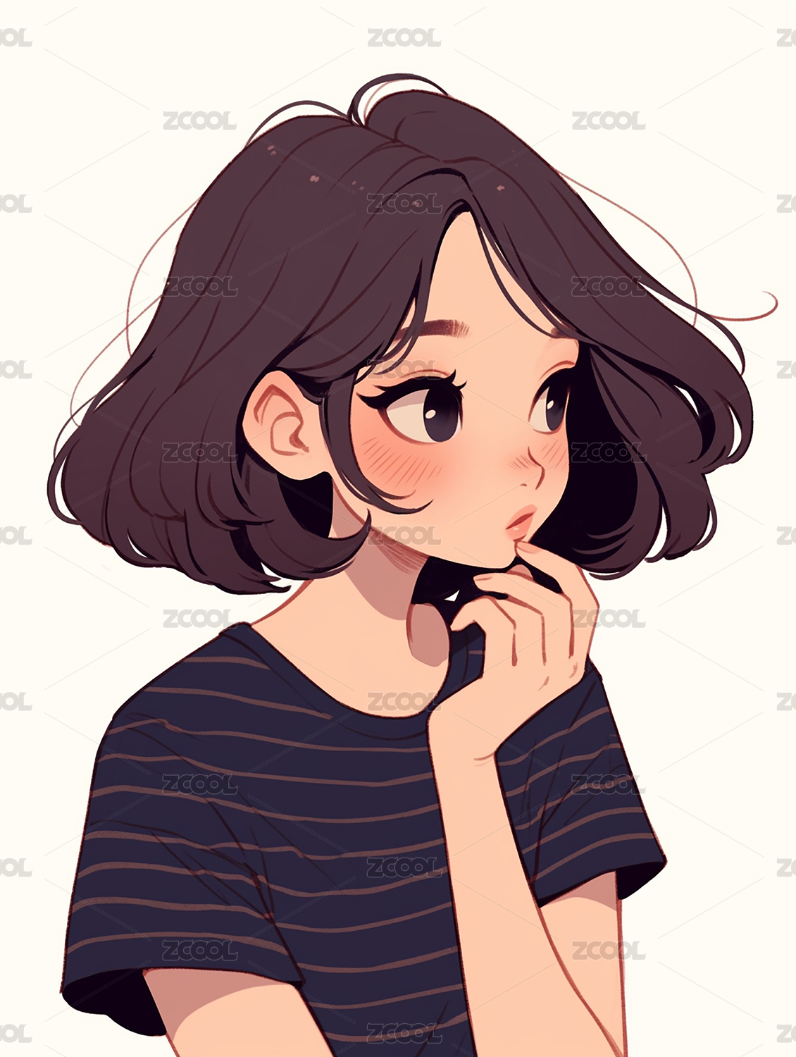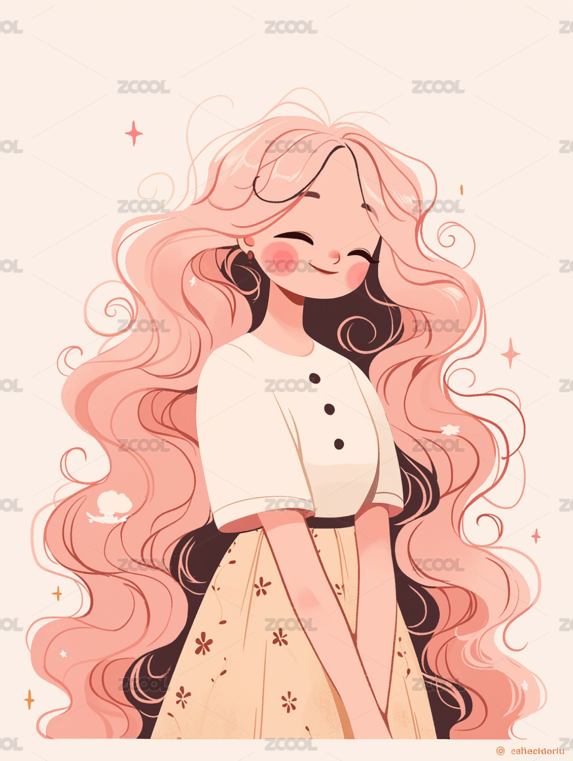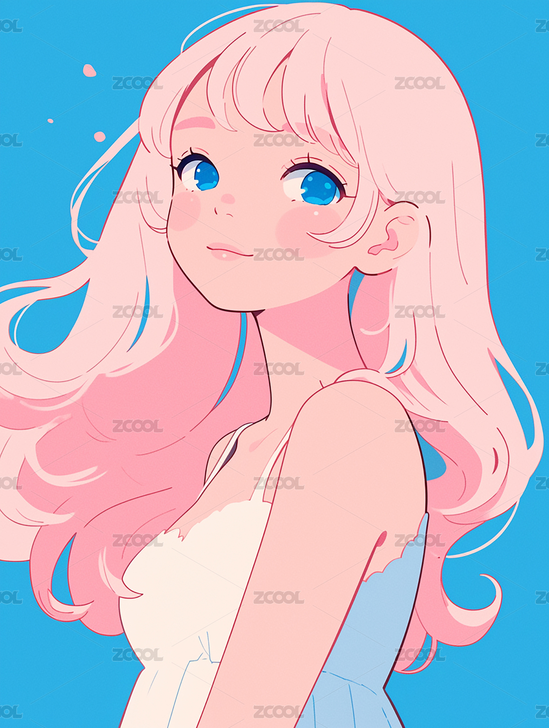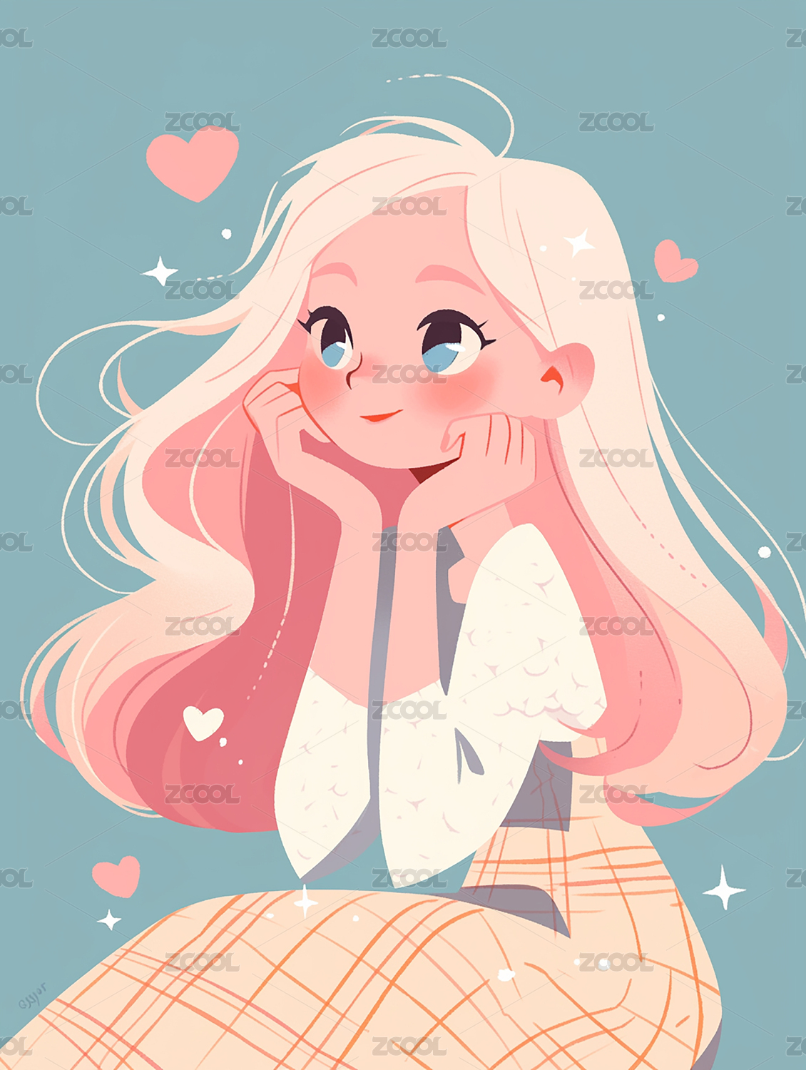 粉黑少女时尚肖像大头照矢量扁平化设计背景