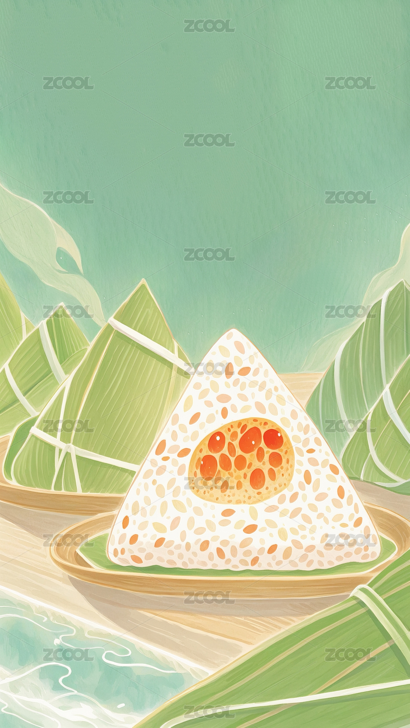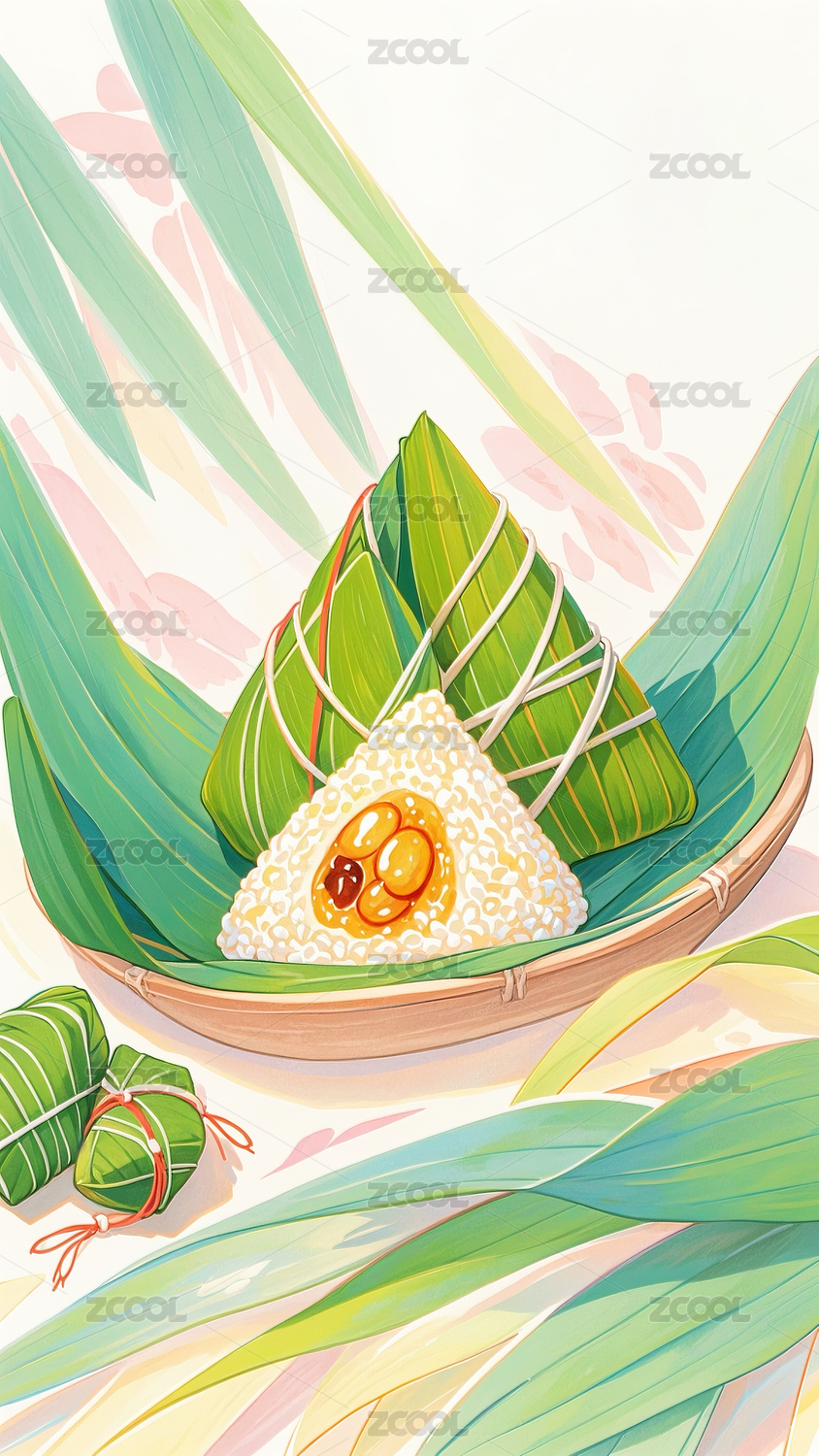 端午节插画 煮熟的粽子冒着热气
