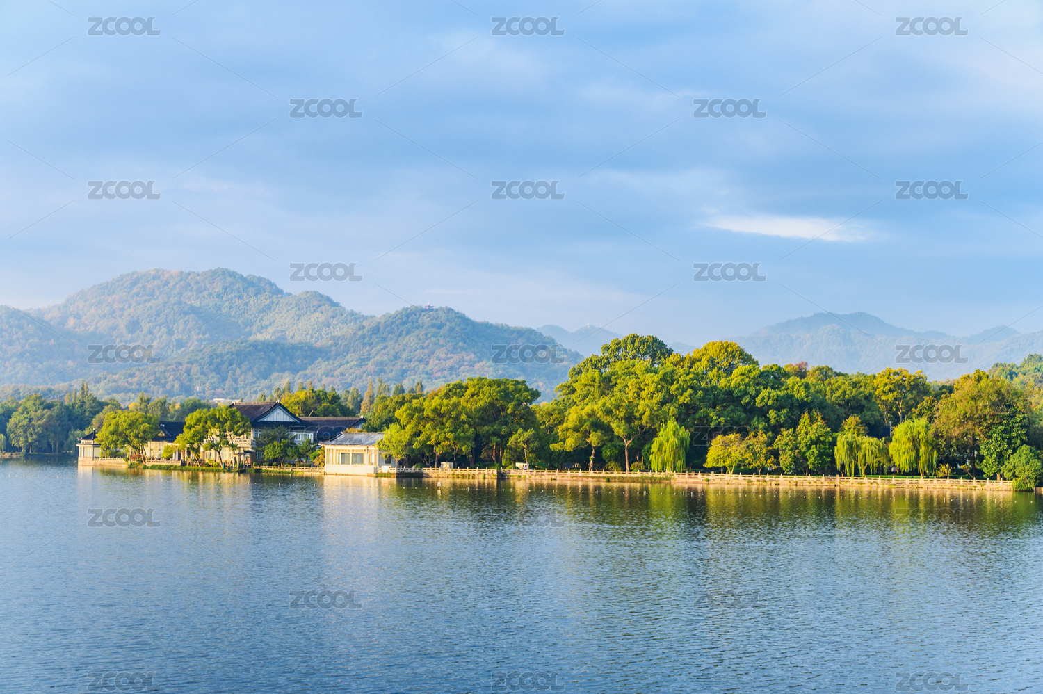 江南杭州西湖浴鹄湾春天春雨阴雨天自然建筑