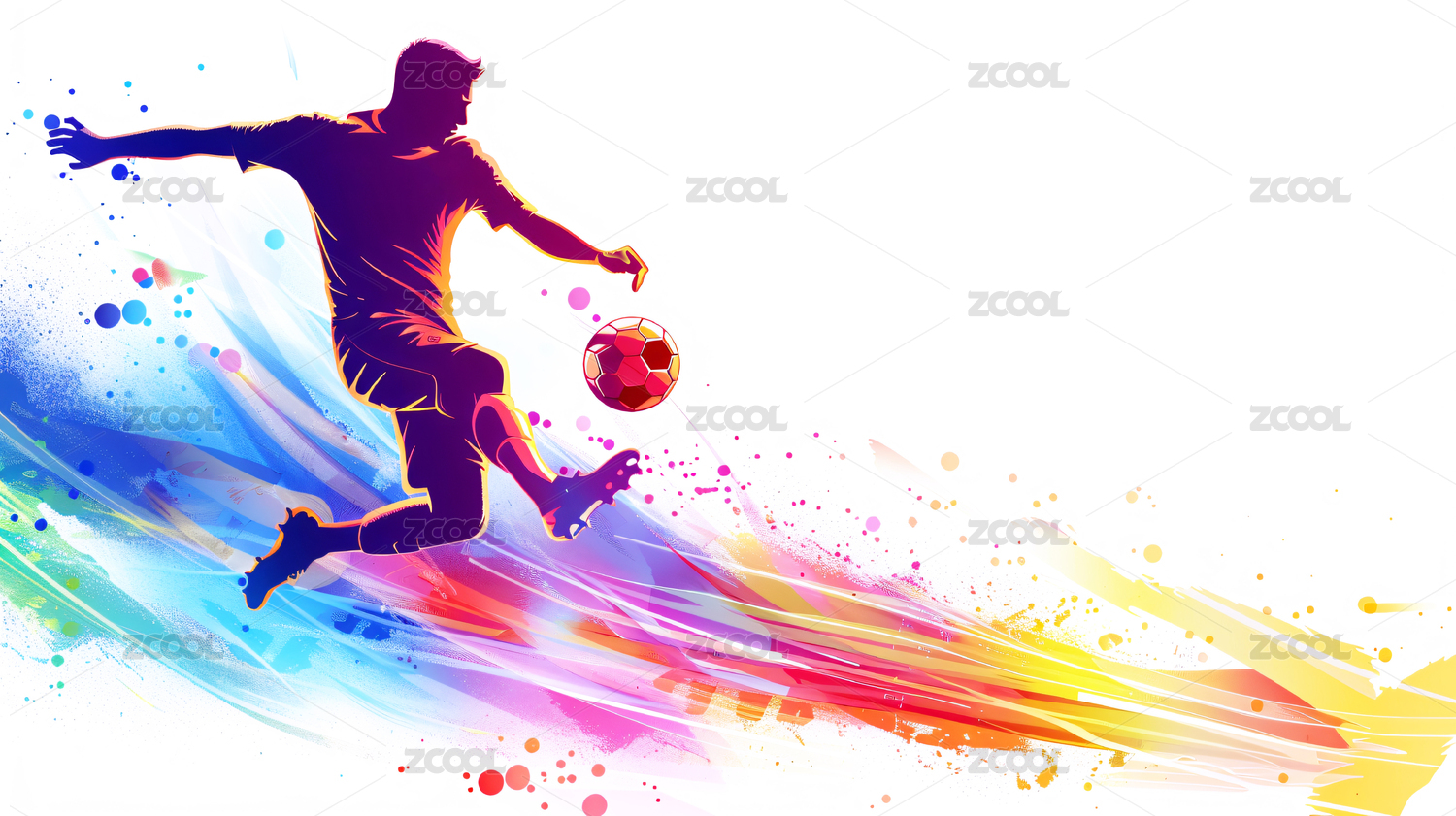彩色酷炫人物在踢足球人物剪影元素