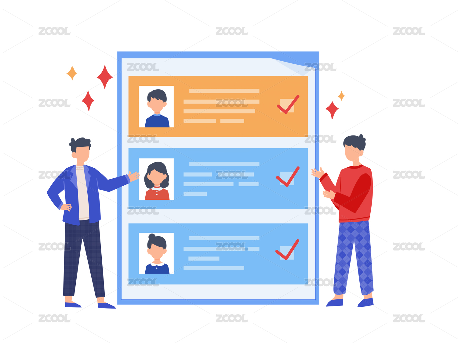 邀请问卷调查, 手绘扁平人物场景创意概念插画