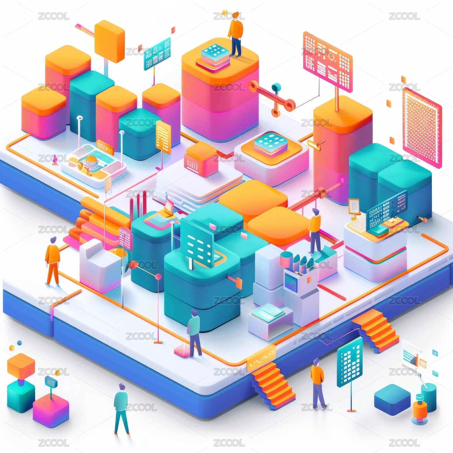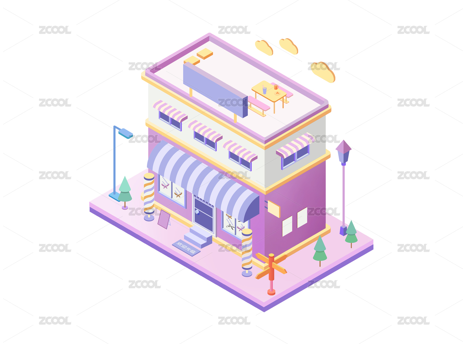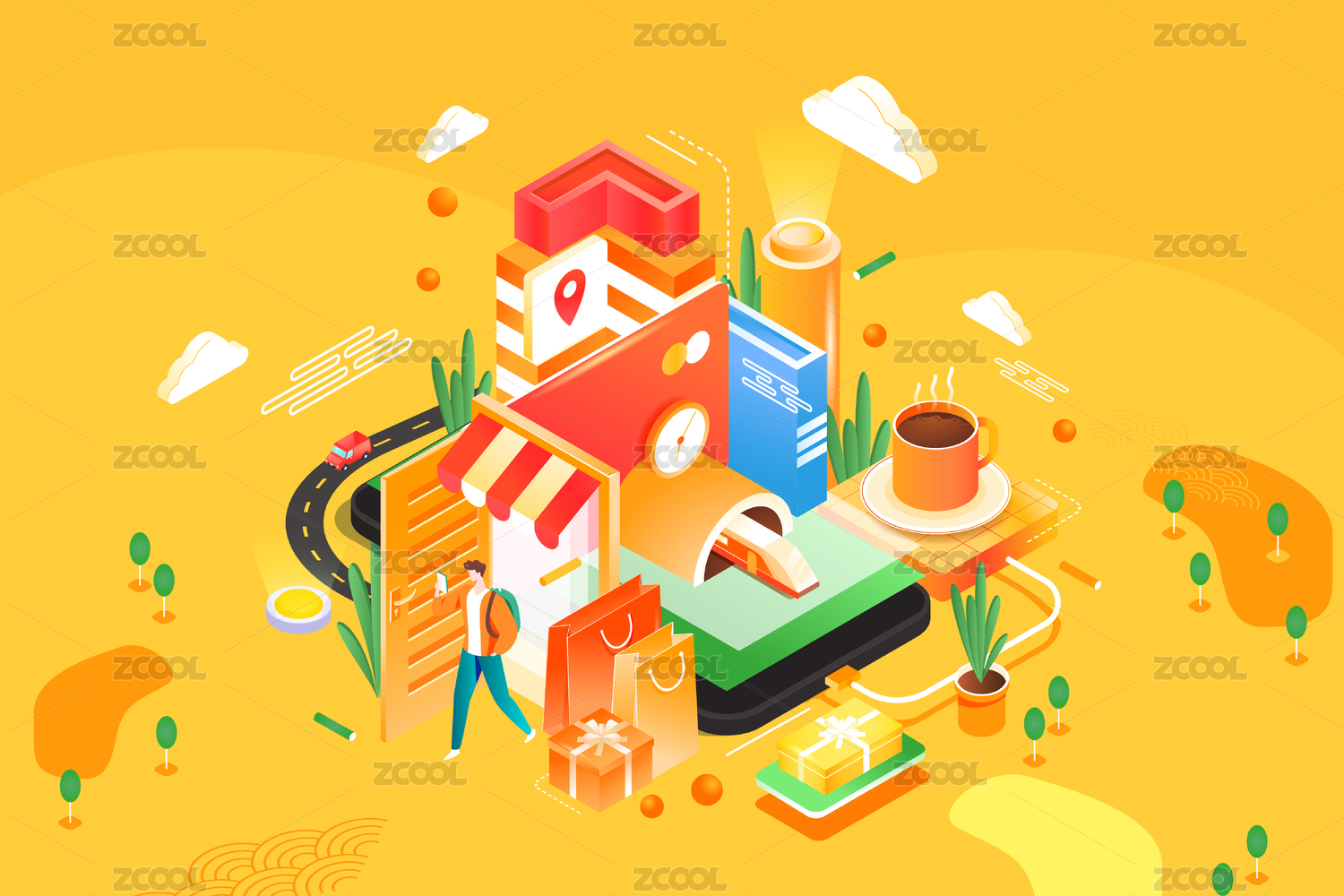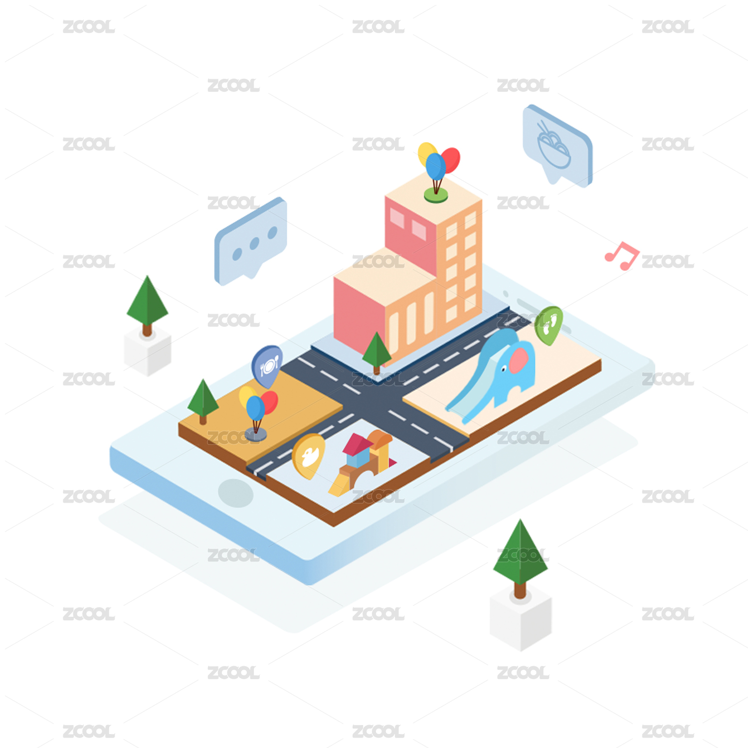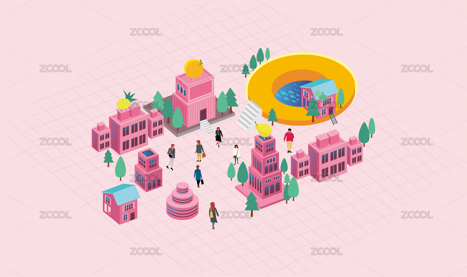 2.5D,电商,办公楼,建筑,楼房,物品,树木,大厦