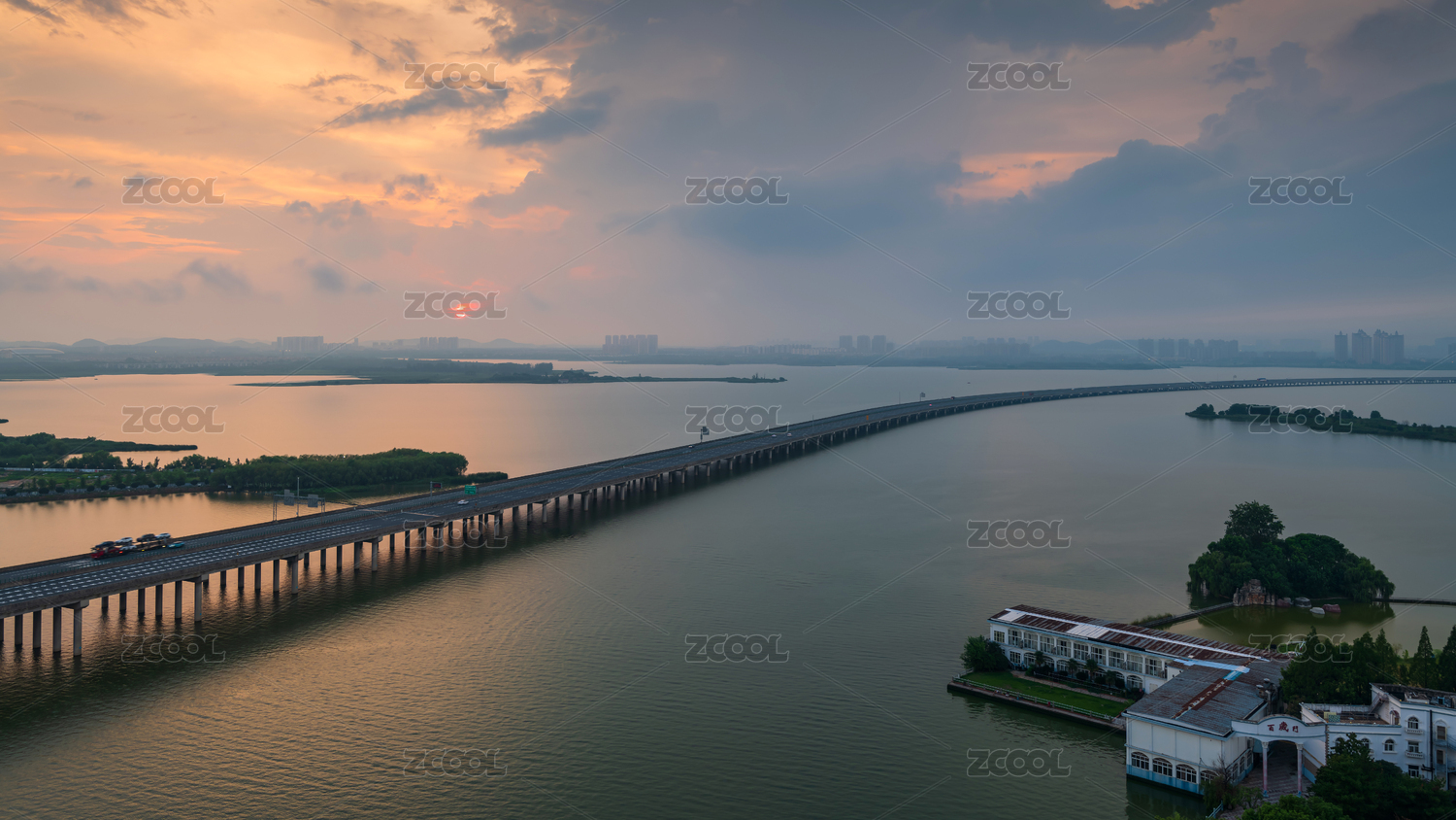 中国湖北荆门钟祥镜月湖雨后夕阳