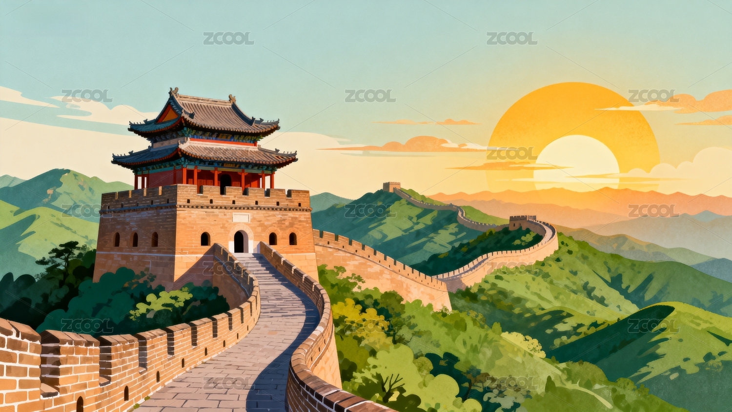 长城,城墙,古道,瞭望塔,山,山脊,花,树,草,灌木