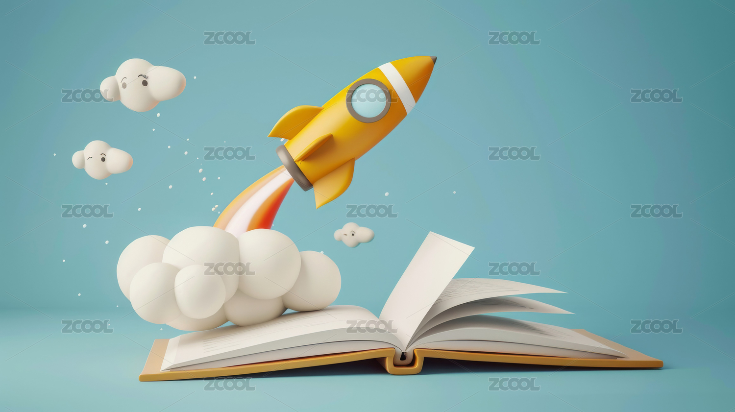 清新明亮纯色桌面上铅笔和纸3D立体插画