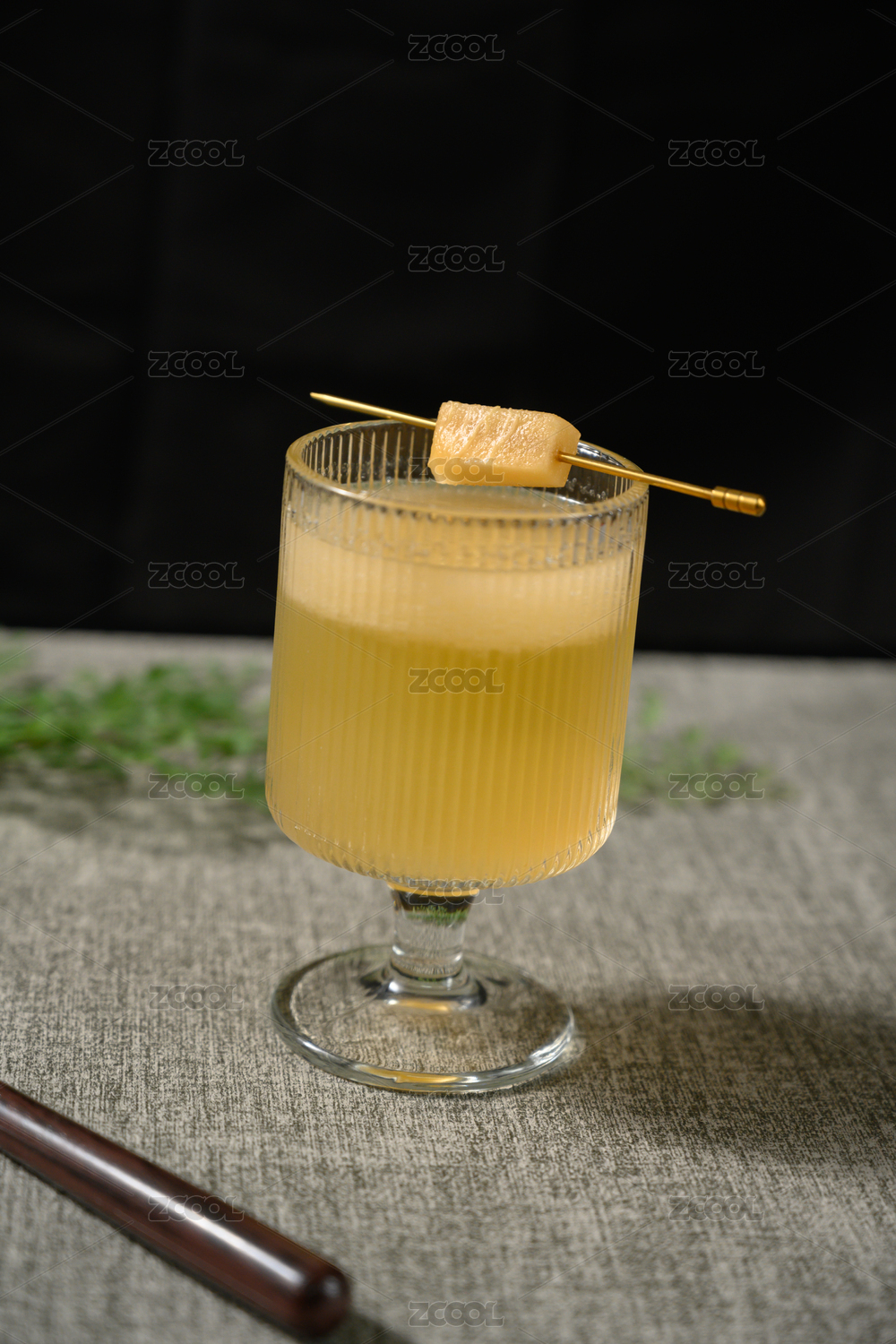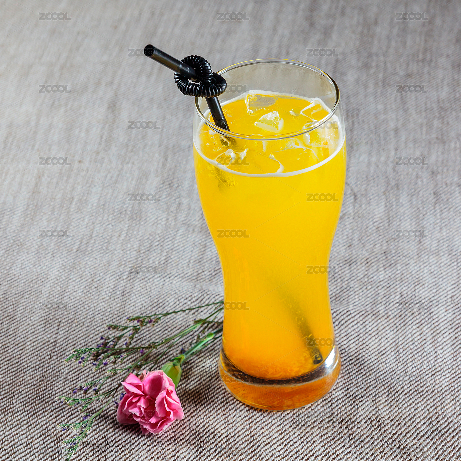 玻璃杯里的黄色鲜榨柠檬果汁饮品饮料