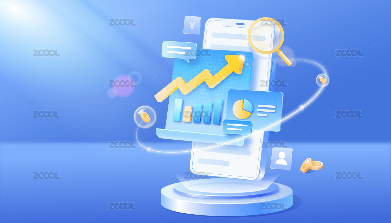 蓝色背景数据图表展示