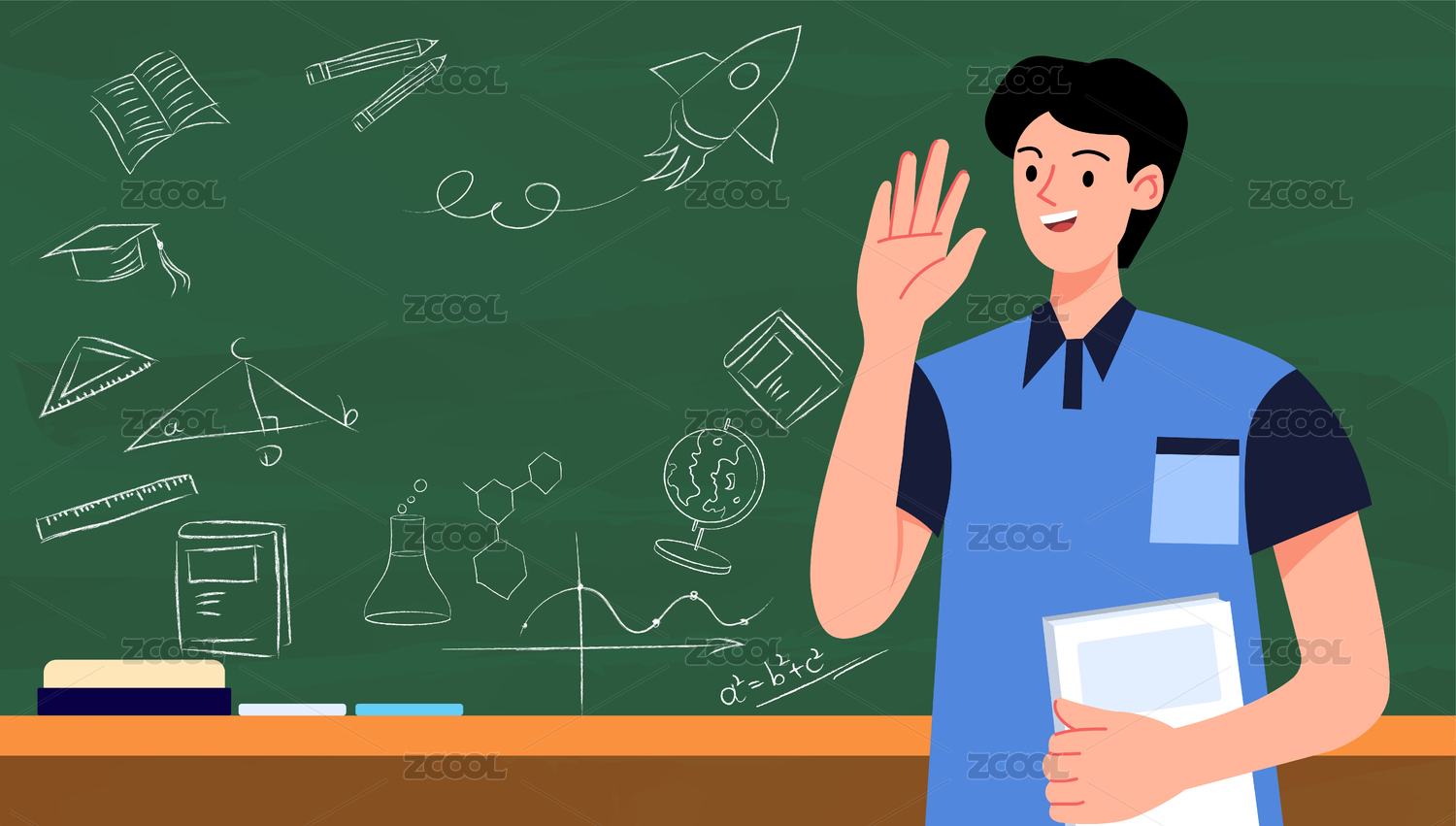 教师节,老师,教室,讲课,数学,黑板,讲台,扁平,插画