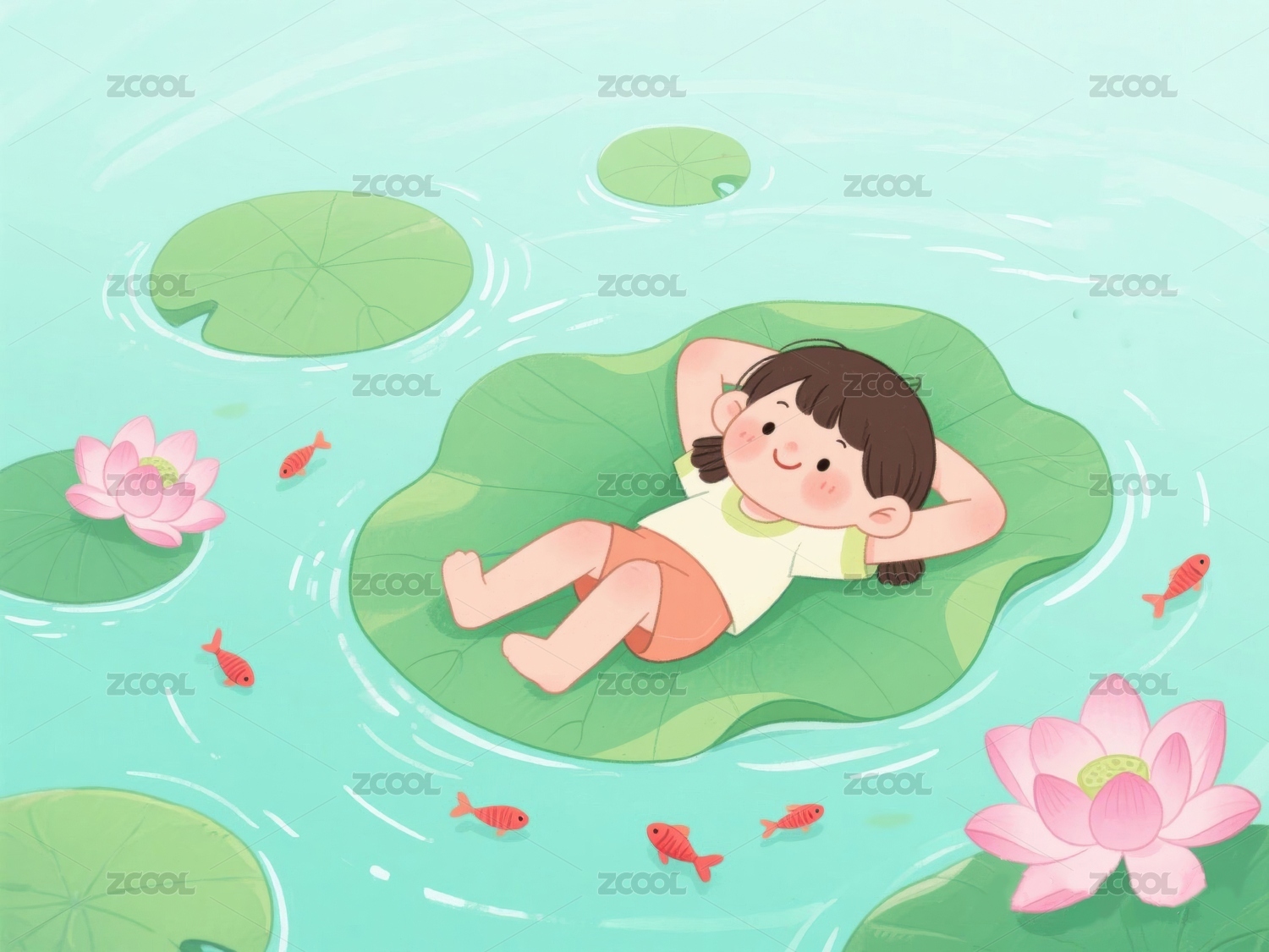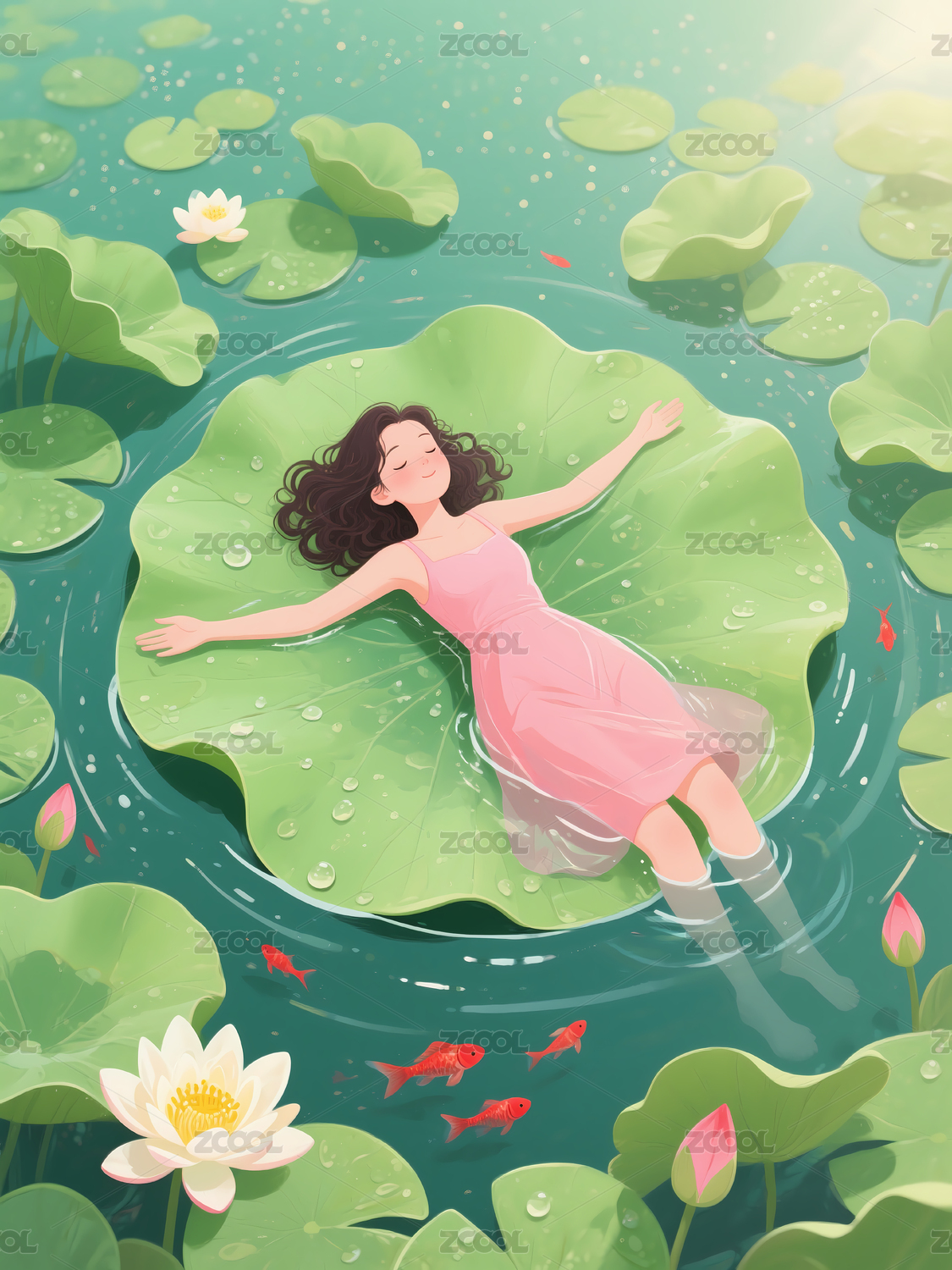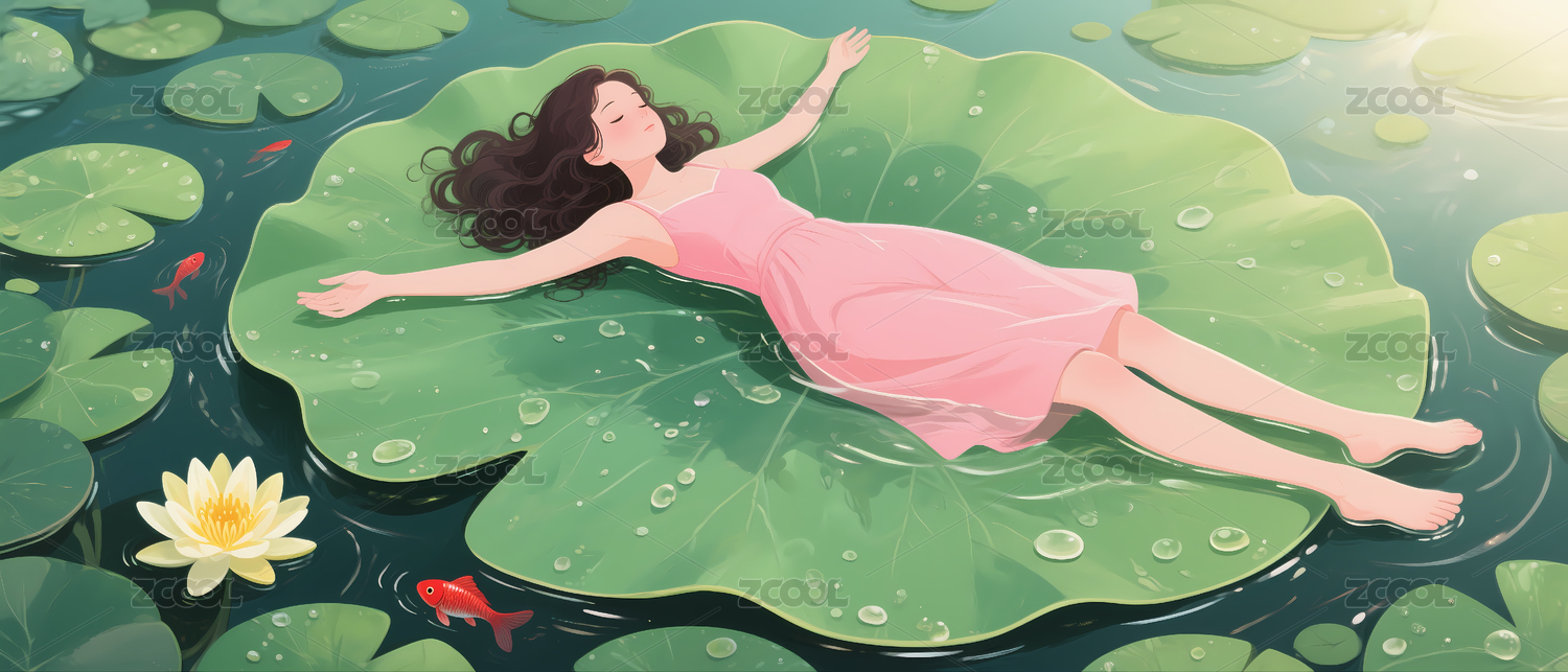 少女莲叶夏日午睡