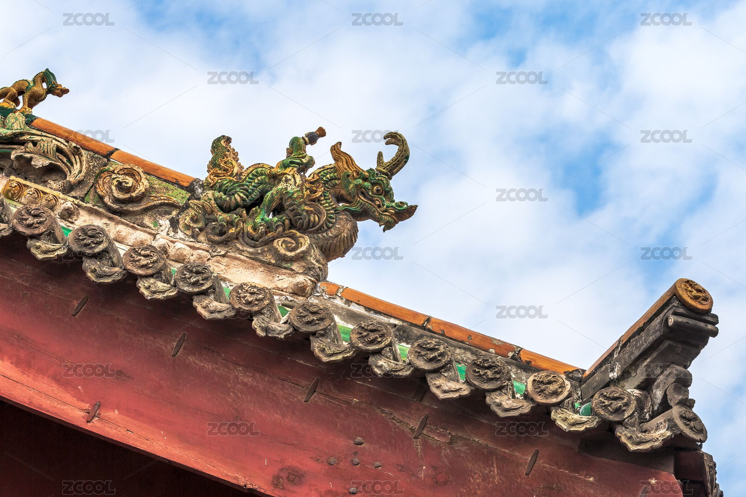 中国传统屋顶建筑脊兽特写