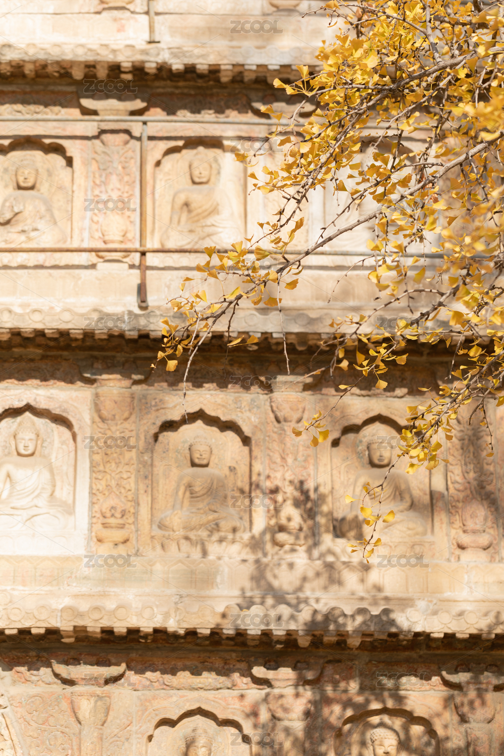 北京五塔寺真觉寺金刚宝座塔与古银杏树秋日风光