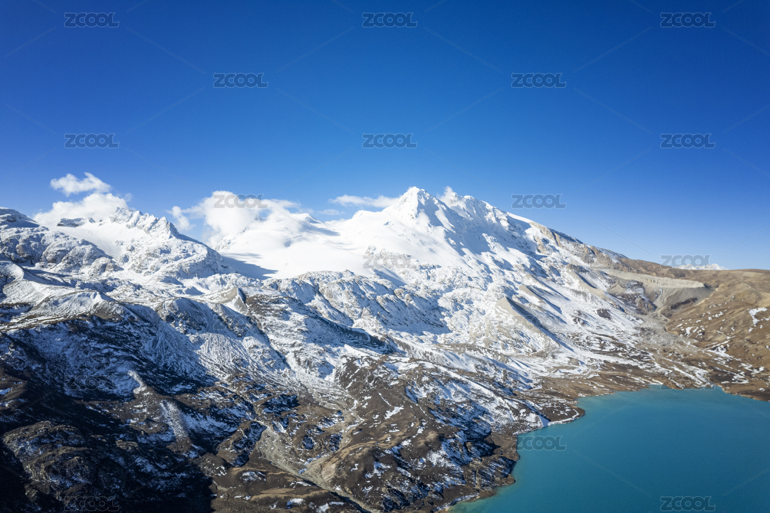中国西藏山南羊卓雍措冬季雪景自然全景风光