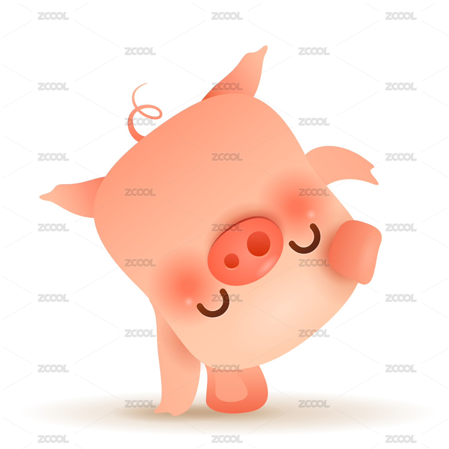 猪,卡通,可爱,憨厚,矢量,插画,正视图,注视镜头,微笑,站立
